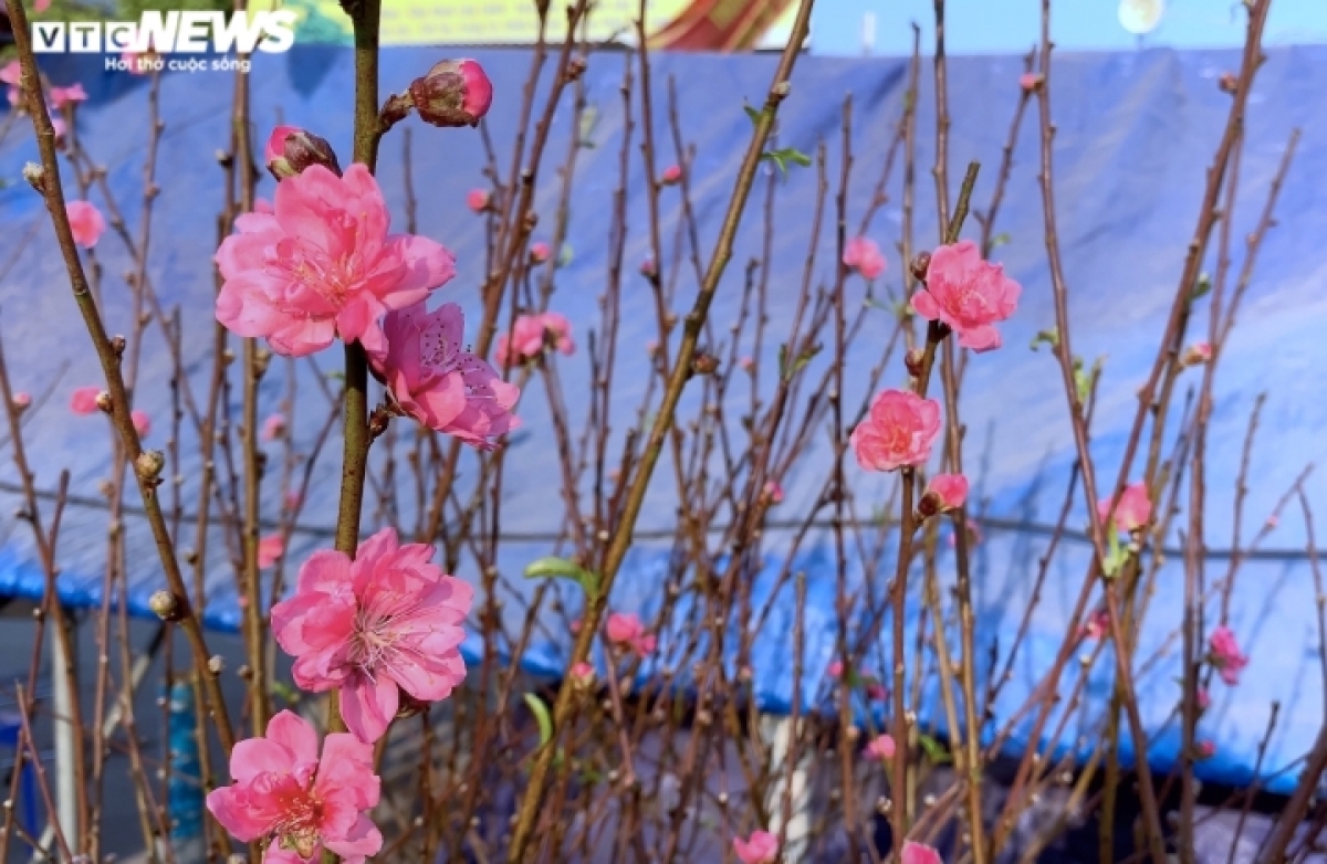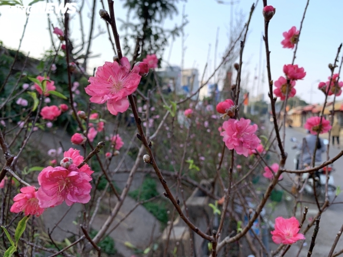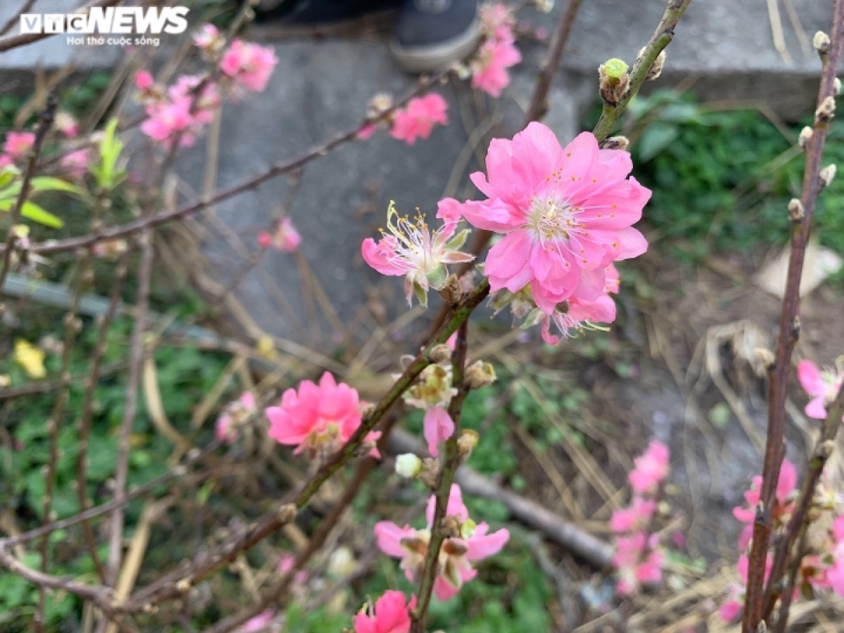 Apart from Nhat Tan peach blossoms, several traders in Quang Ba flower market also sell wild peach blossoms, which are a lighter pink compared to those grown in Hanoi. |