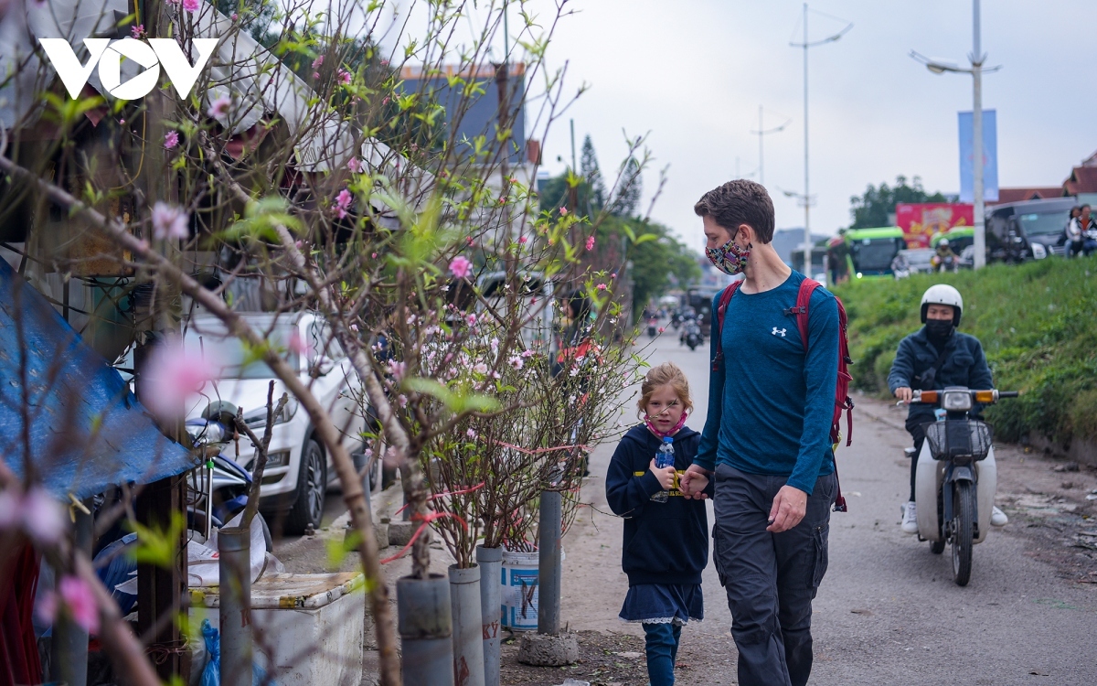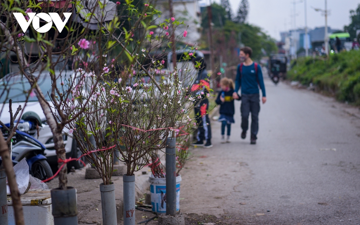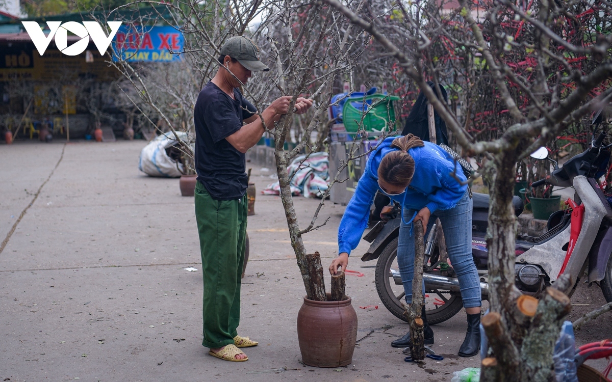 The traders say they sell peach flower branches from the northern mountain province of Lang Son, Lao Cai, and Ha Giang province.