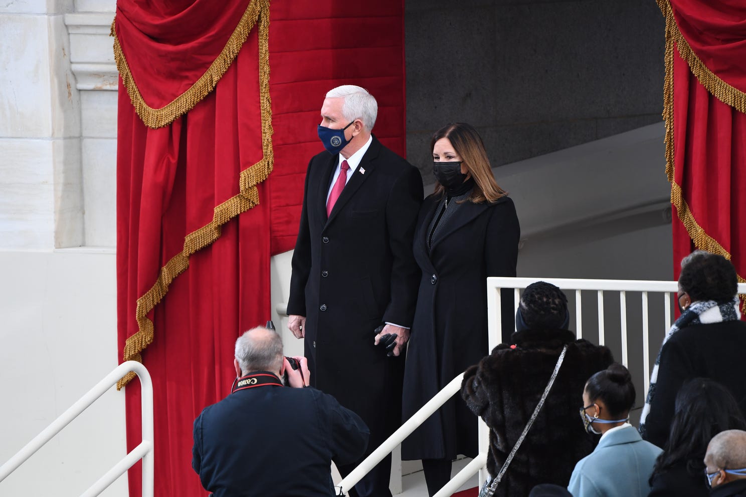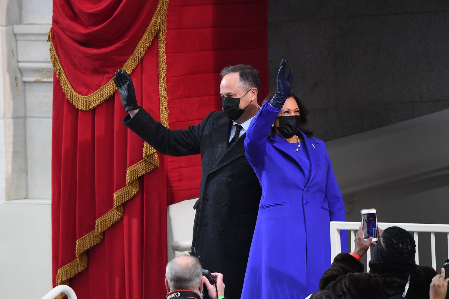 From left, Doug Emhoff, U.S. Vice President-elect Kamala Harris, Jill Biden and President-elect Joe Biden wave as they arrive on the East Front of the U.S. Capitol for the inauguration on January 20, 2021 in Washington, DC. During today's inauguration ceremony Joe Biden becomes the 46th president of the United States. Photo: JOE RAEDLE, GETTY IMAGES |