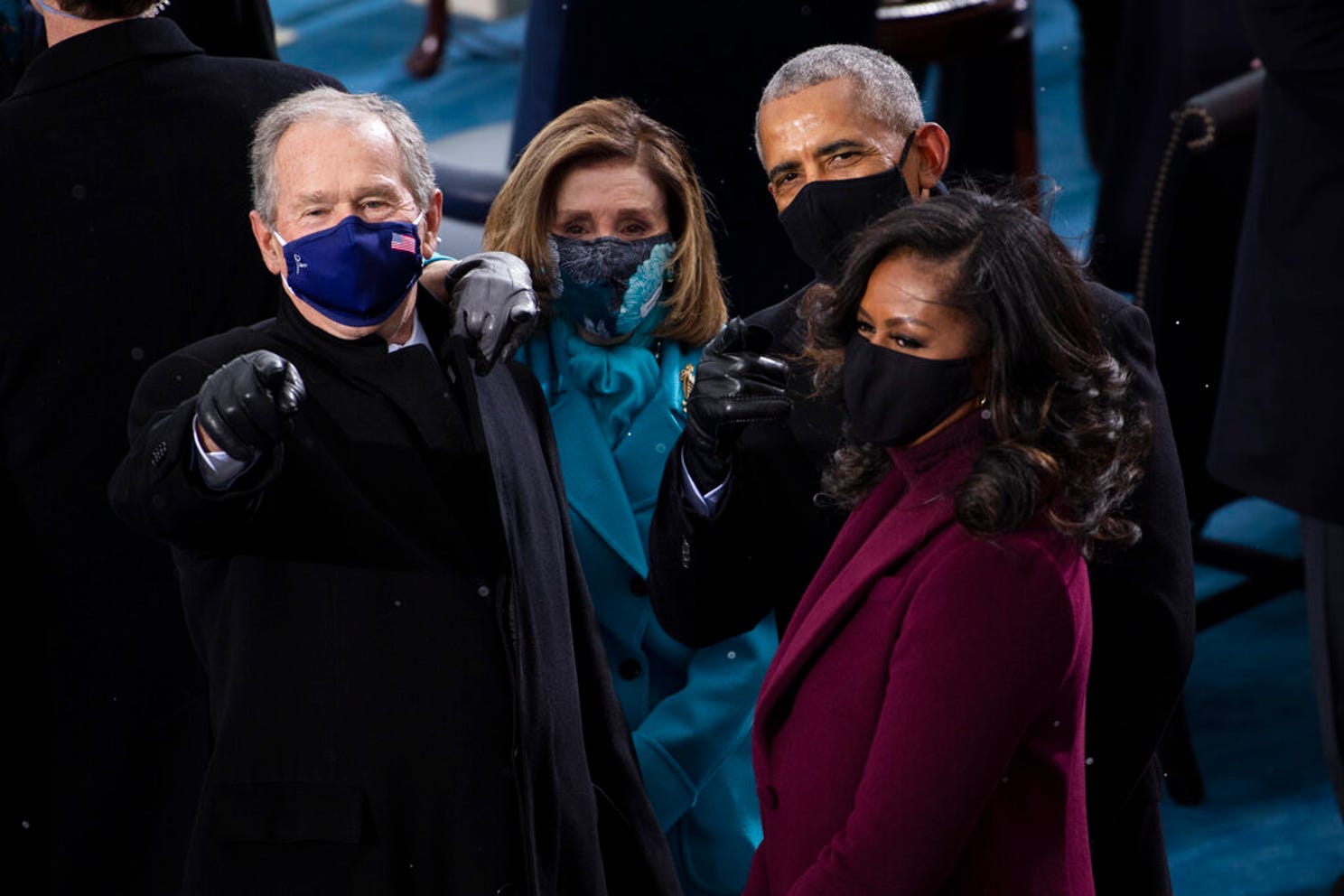Former President George W. Bush, from left, Speaker of the House Nancy Pelosi, D-Calif., former President Barack Obama and Michelle Obama arrive to the West Front of the U.S. Capitol for the Inauguration of Joe Biden in Washington on Wednesday, Jan. 20, 2021. Photo: CAROLINE BREHMAN, AP |