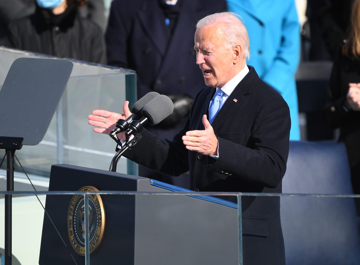 U.S. President Joe Biden delivers his inaugural address on the West Front of the U.S. Capitol on January 20, 2021 in Washington, DC. During today's inauguration ceremony Joe Biden becomes the 46th president of the United States. Photo: TASOS KATOPODIS, GETTY IMAGES |