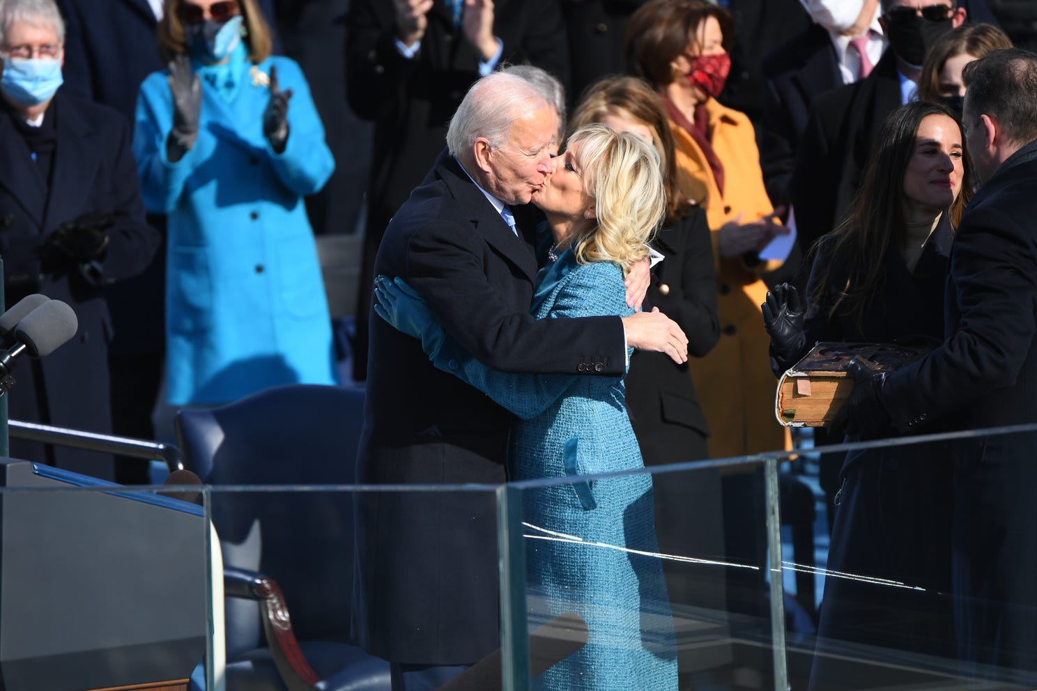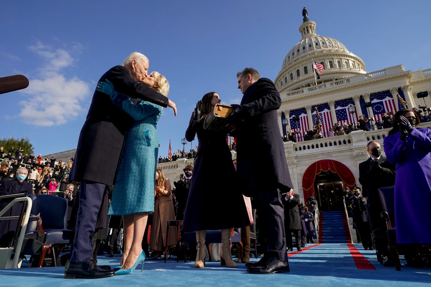 President Joe Biden kisses first lady Jill Biden, as his son Hunter Biden and daughter Ashley Biden, look on after being sworn-in during the 59th Presidential Inauguration at the U.S. Capitol in Washington, Wednesday, Jan. 20, 2021. Photo: ANDREW HARNIK, AP |