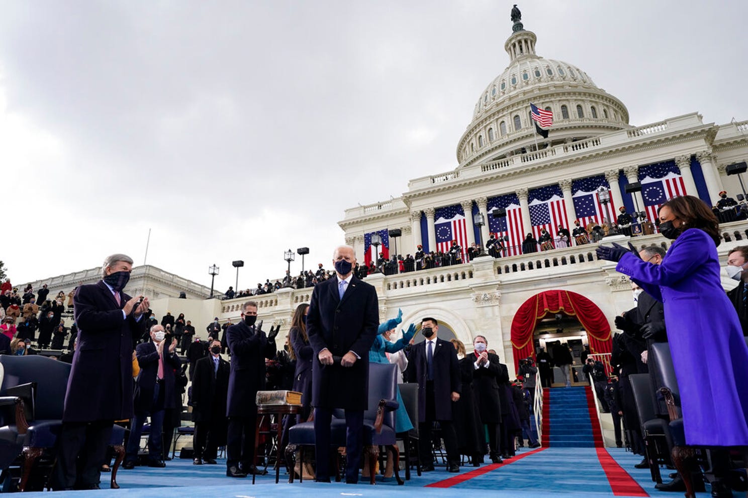 President-elect Joe Biden arrives, with his wife Jill Biden, and members of his family to be sworn in as 46th president of the United States during the 59th Presidential Inauguration at the U.S. Capitol in Washington, Wednesday, Jan. 20, 2021. Photo: ANDREW HARNIK, AP |
