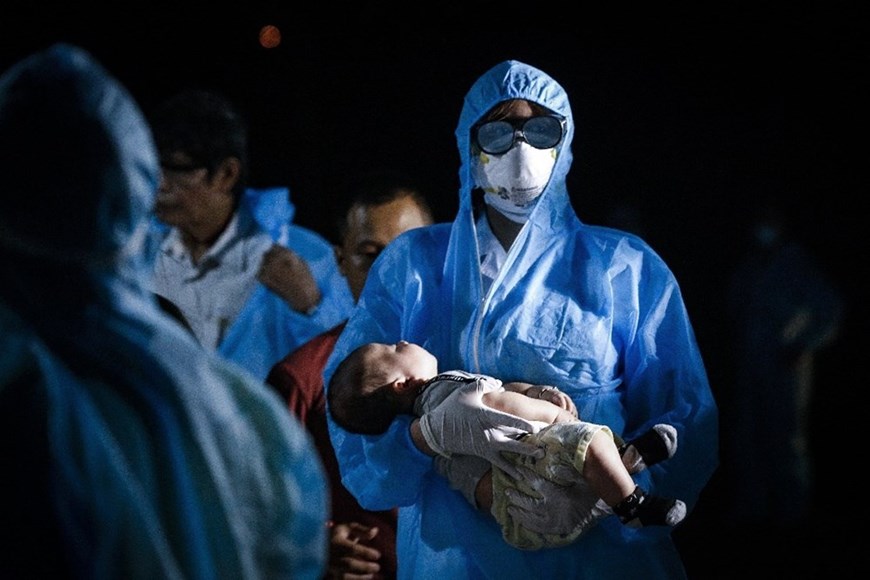 This photo by Vietnam News Agency photographer Luu Trong Dat won first prize in the professional photograph category. The photo was taken at 8:49 pm on June 19, 2020, when a group of Vietnamese citizens returning from abroad were sent to a military quarantine facility in the northern province of Hoa Binh. |