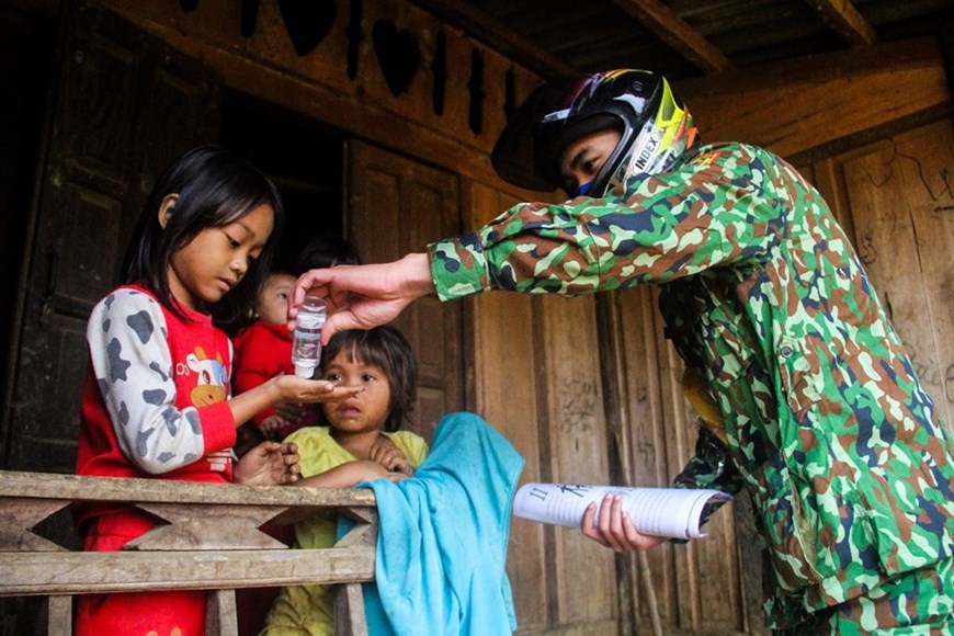 Children in upland areas are instructed on how to wash their hands. |