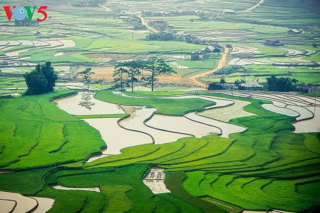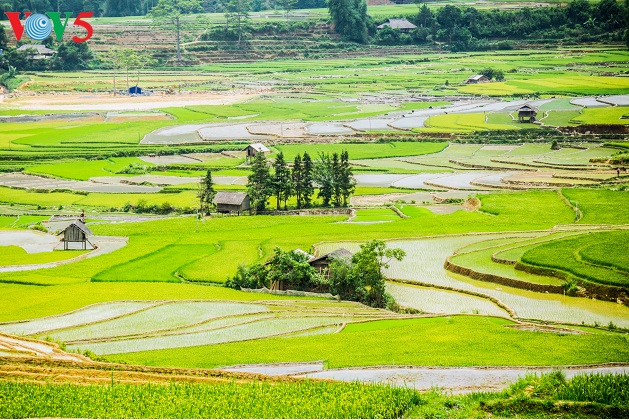 (VOVWORLD) - Mu Cang Chai district in Yen Bai province is famous for its yellow terraced rice fields. But visitors who come during the flood season will be stunned by the beauty of these magnificent rice fields blending harmoniously with the surrounding mountains and forests.
