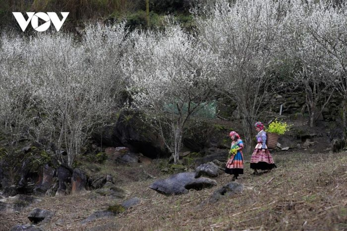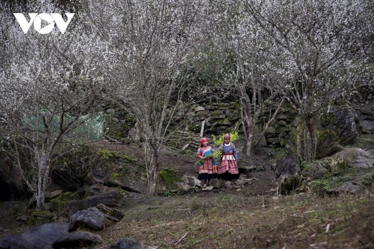 These days, the Bac Ha Plateau is immersed in the white color of plum flowers blossom. |