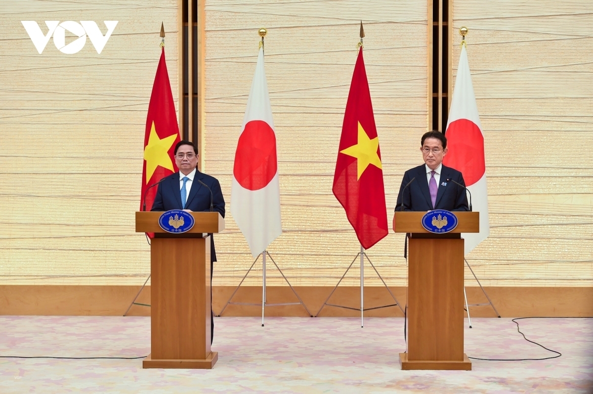 They hold a brief pressing, announcing that they have agreed to bring the Vietnam – Japan extensive strategic partnership to new heights. |