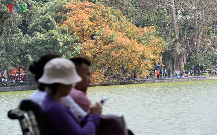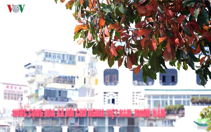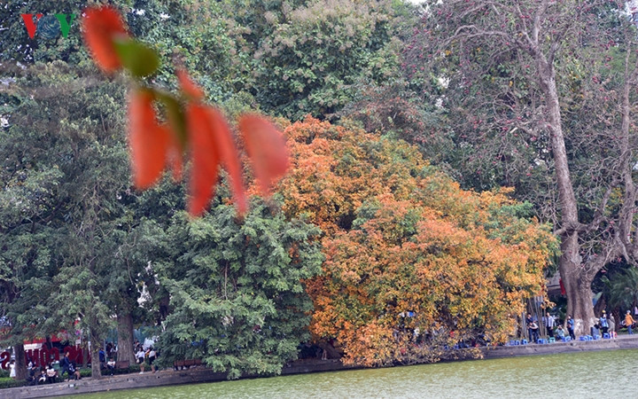(VOVWORLD) - In the early days into the spring season, Hoan Kiem lake in the capital city of Hanoi has experienced the transformation in colour of foliage of Barringtonia acutangula and maple leaves, creating a breathtaking natural scenery.