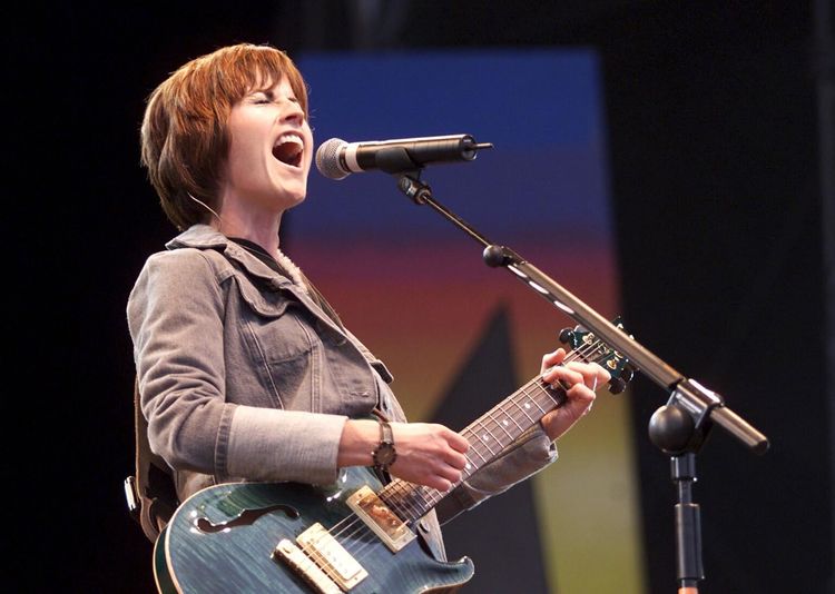 Dolores O'Riordan performs at the openair festival 'Out in the Green' in Frauenfeld, Switzerland, Sunday, July 9, 2000. (AP photo/Arno Balzarini) |