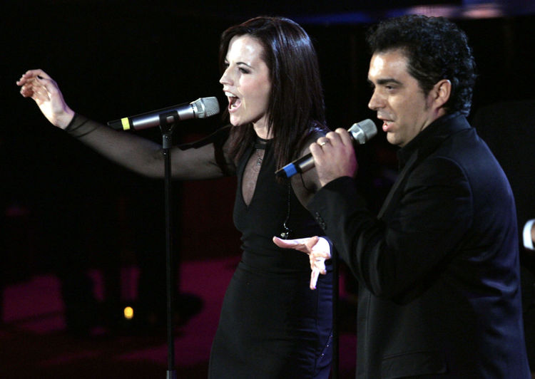 Dolores O' Riordan sings with Gianluca Terranova during the traditional Christmas concert in the Pope Paul VI Hall, at the Vatican, Saturday, December 3, 2005. (AP Photo/Pier Paolo Cito) |