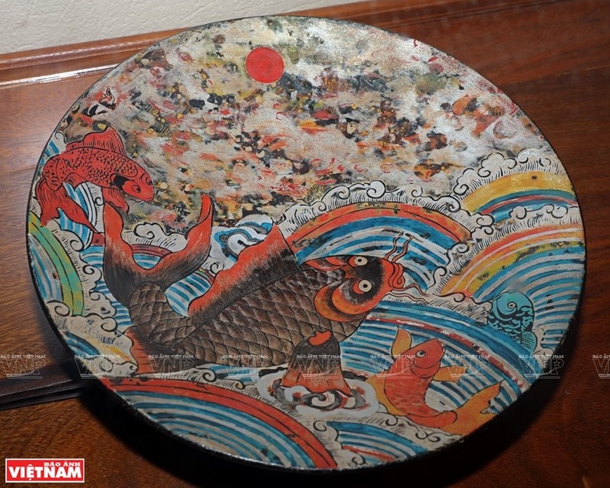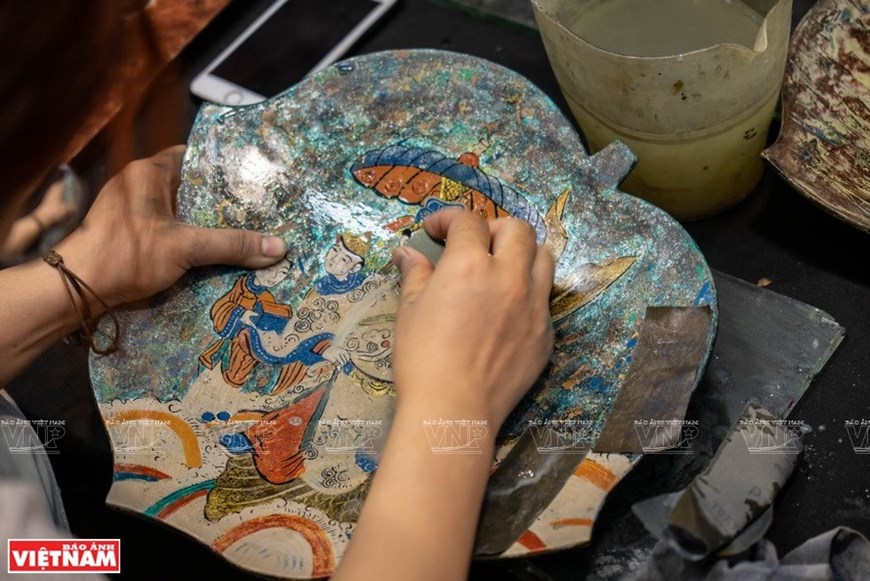 Members of the project 'From tradition to tradition' recreate Hang Trong paintings on lacquer and silk |