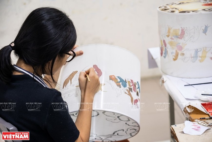 Patterns of Hang Trong paintings are featured on a lantern |