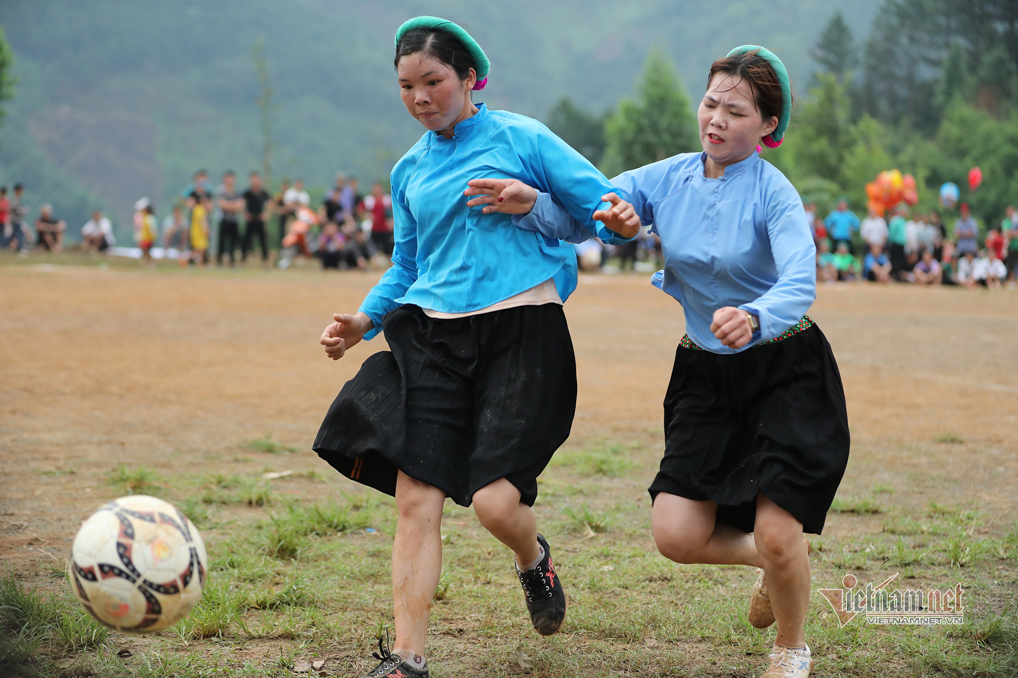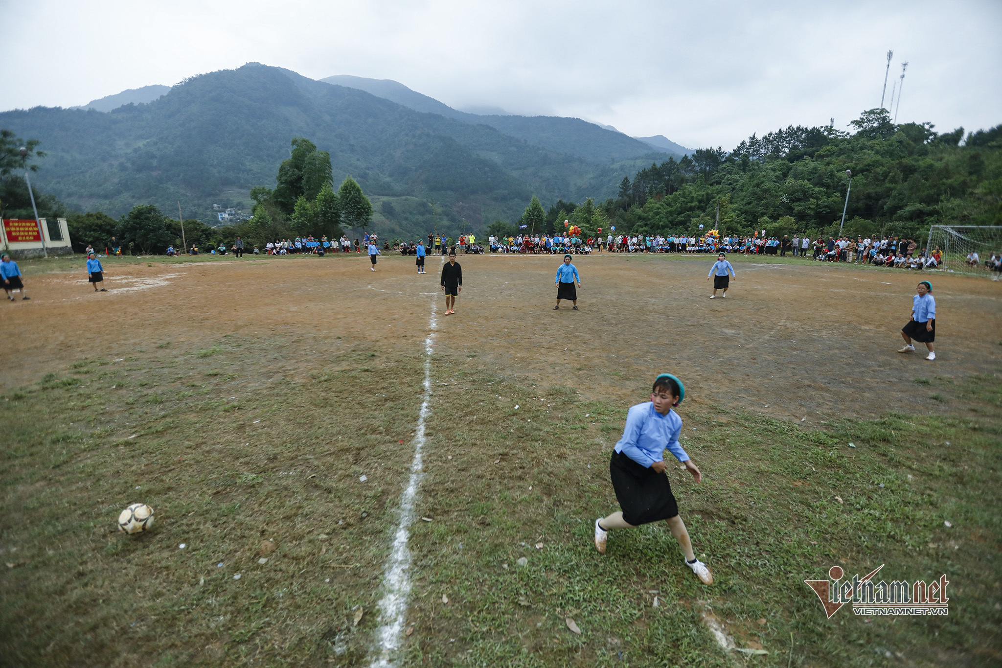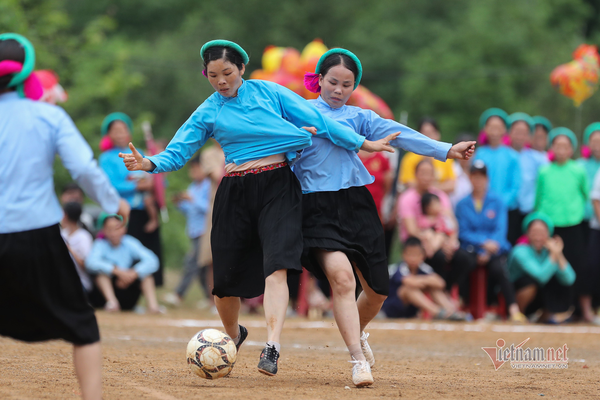 Women's football is popular in Vietnam but the image of young girls of the San Chi ethnic minority group in Huc Dong commune in traditional costumes and headscarves playing football is especially impressive.