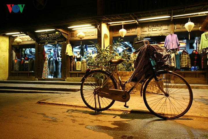 A tranquil scene of Hoi An at night. Here, bicycles can be placed outside on the streets without the need to lock them.