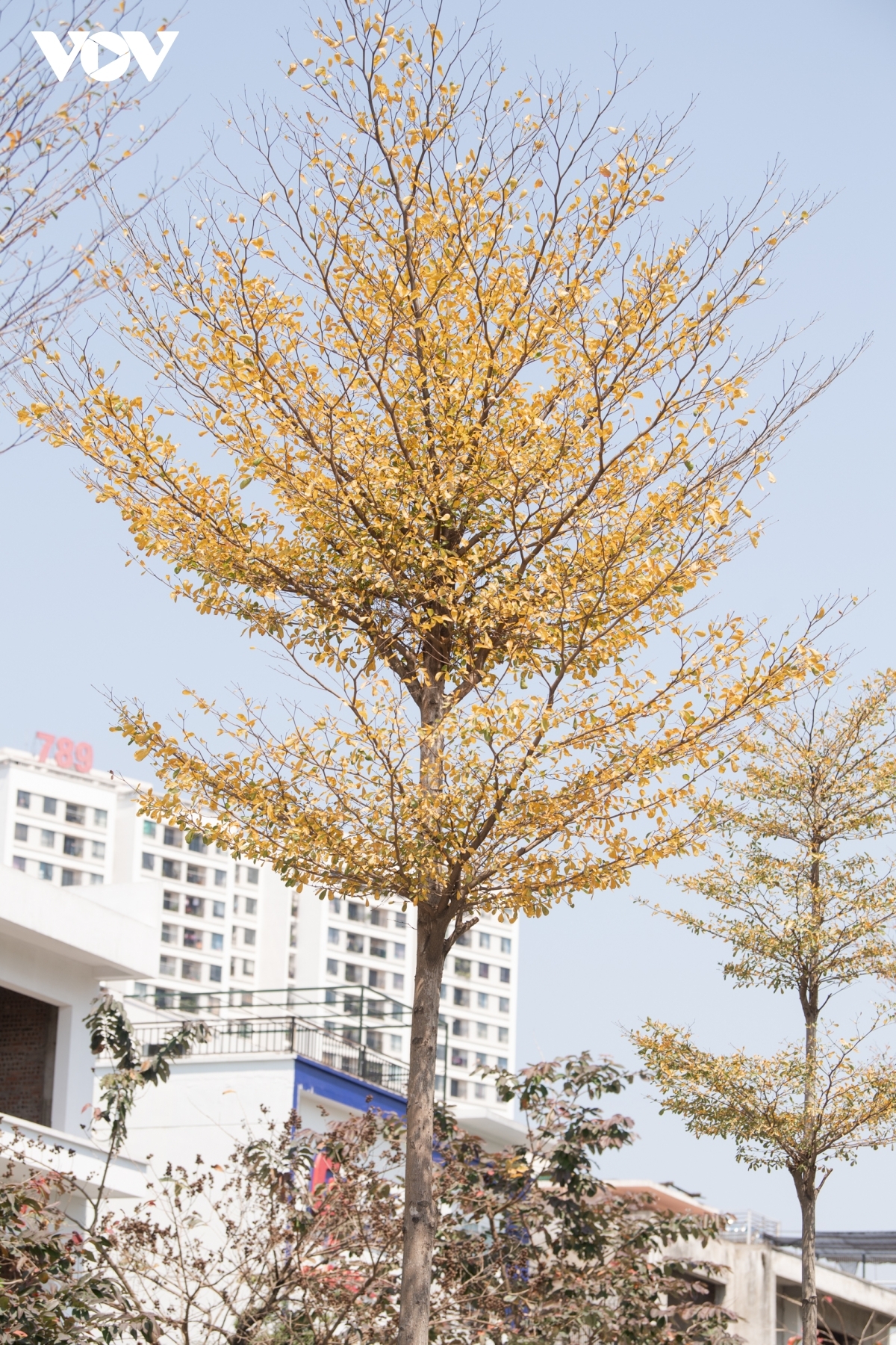 The street is brightened up by the appearance of the gold-coloued leaves. |