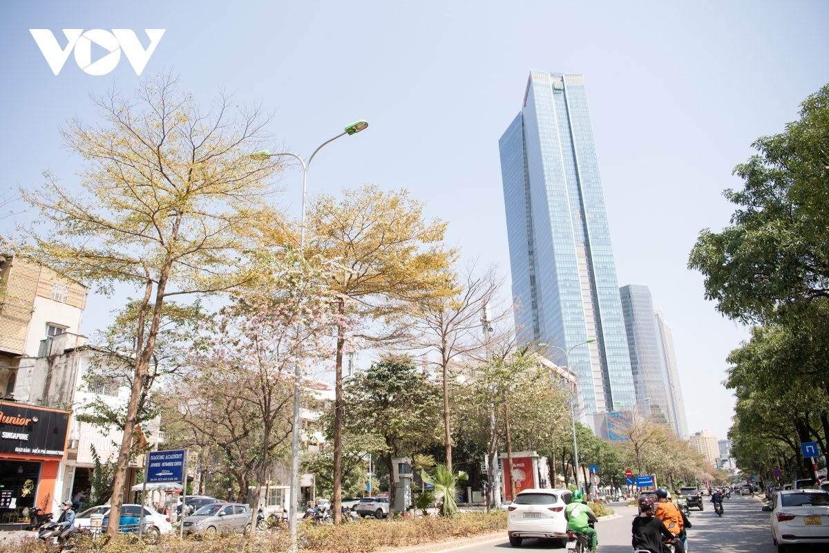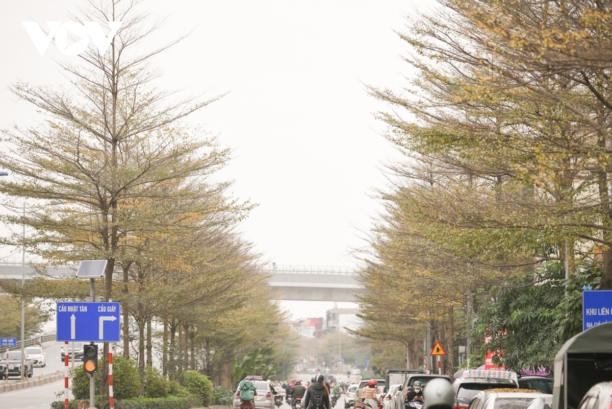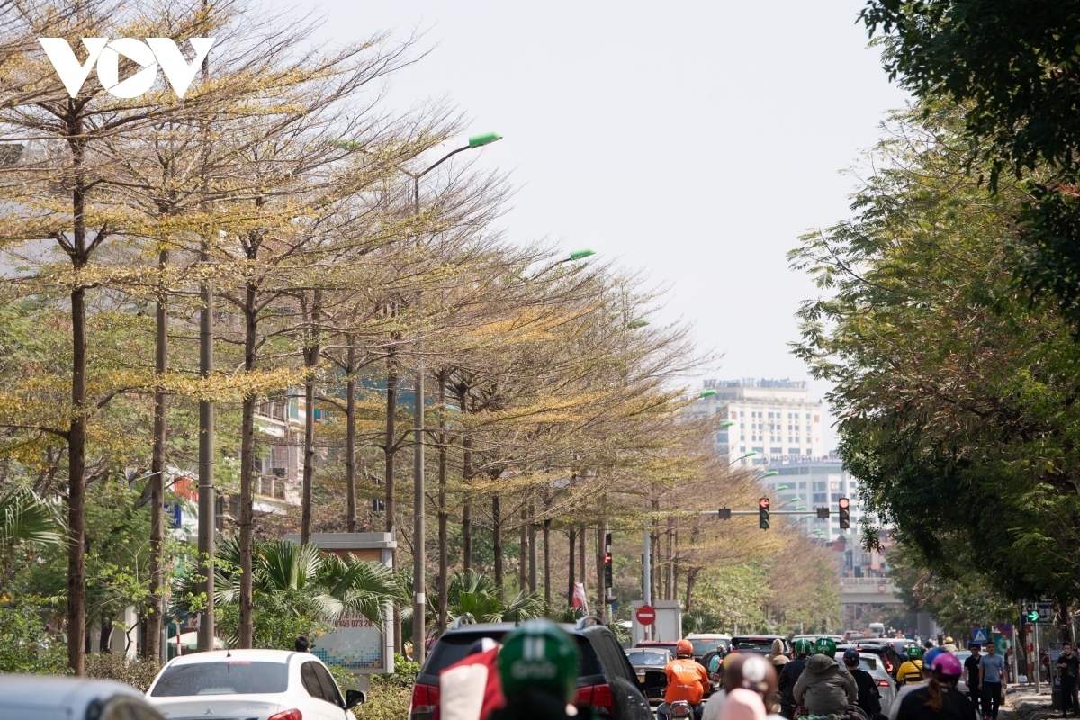 Typically during early March, almond trees along To Lich river begin to bud with an array of yellow leaves. |