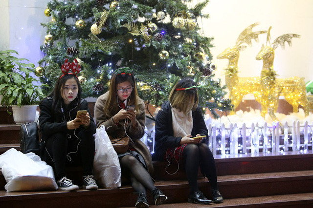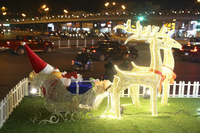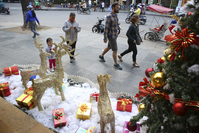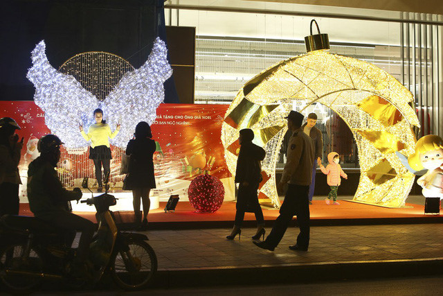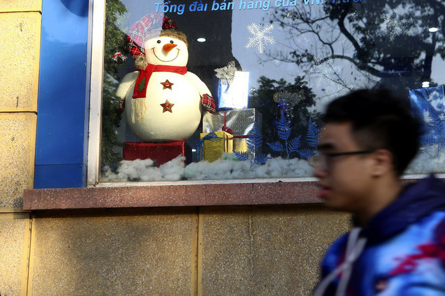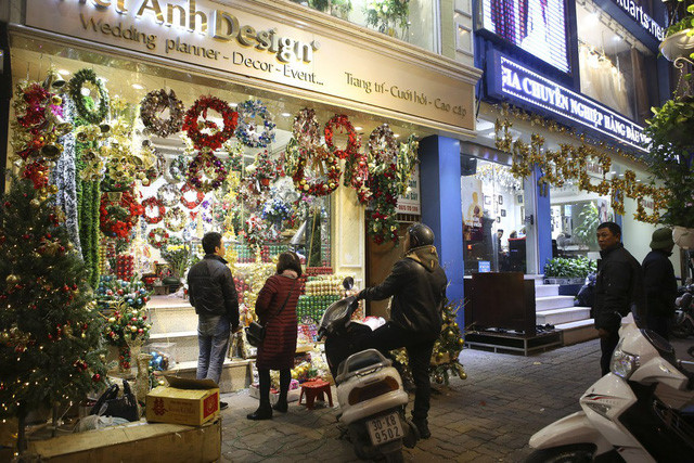 A shop on Dai Co Viet street features decorations with a number of Christmas accessories. |