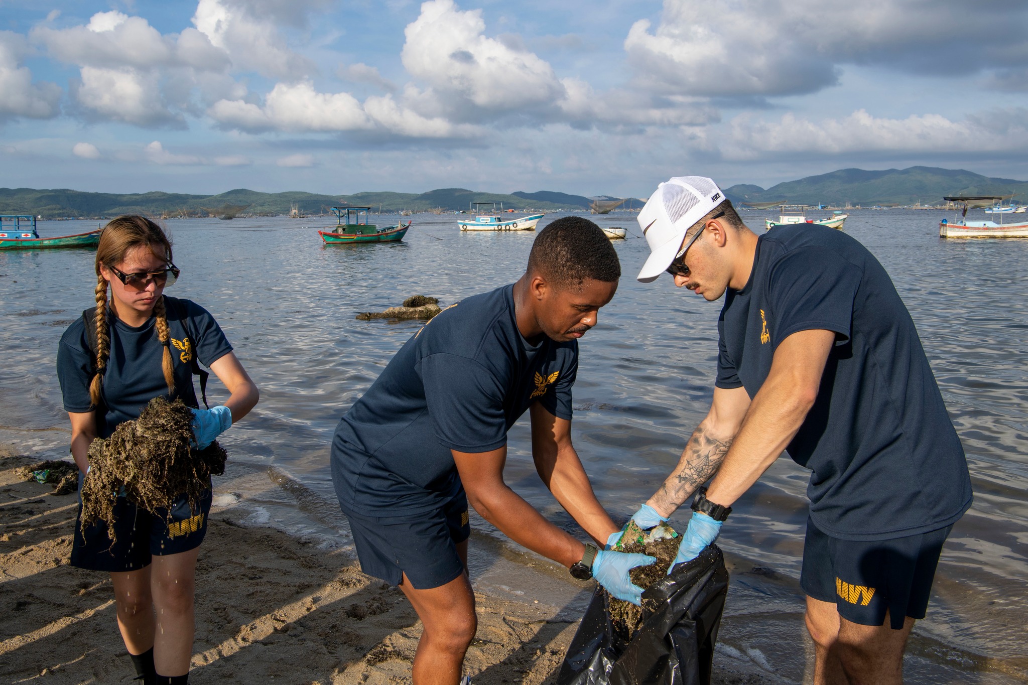 U.S. Navy Sailors participate in a beach clean-up at North Song Cau Beach during a Pacific Partnership (PP 22) host nation outreach event (HNOE). (U.S. Navy photo by Mass Communication Specialist 2nd Class Brandie Nuzzi) |