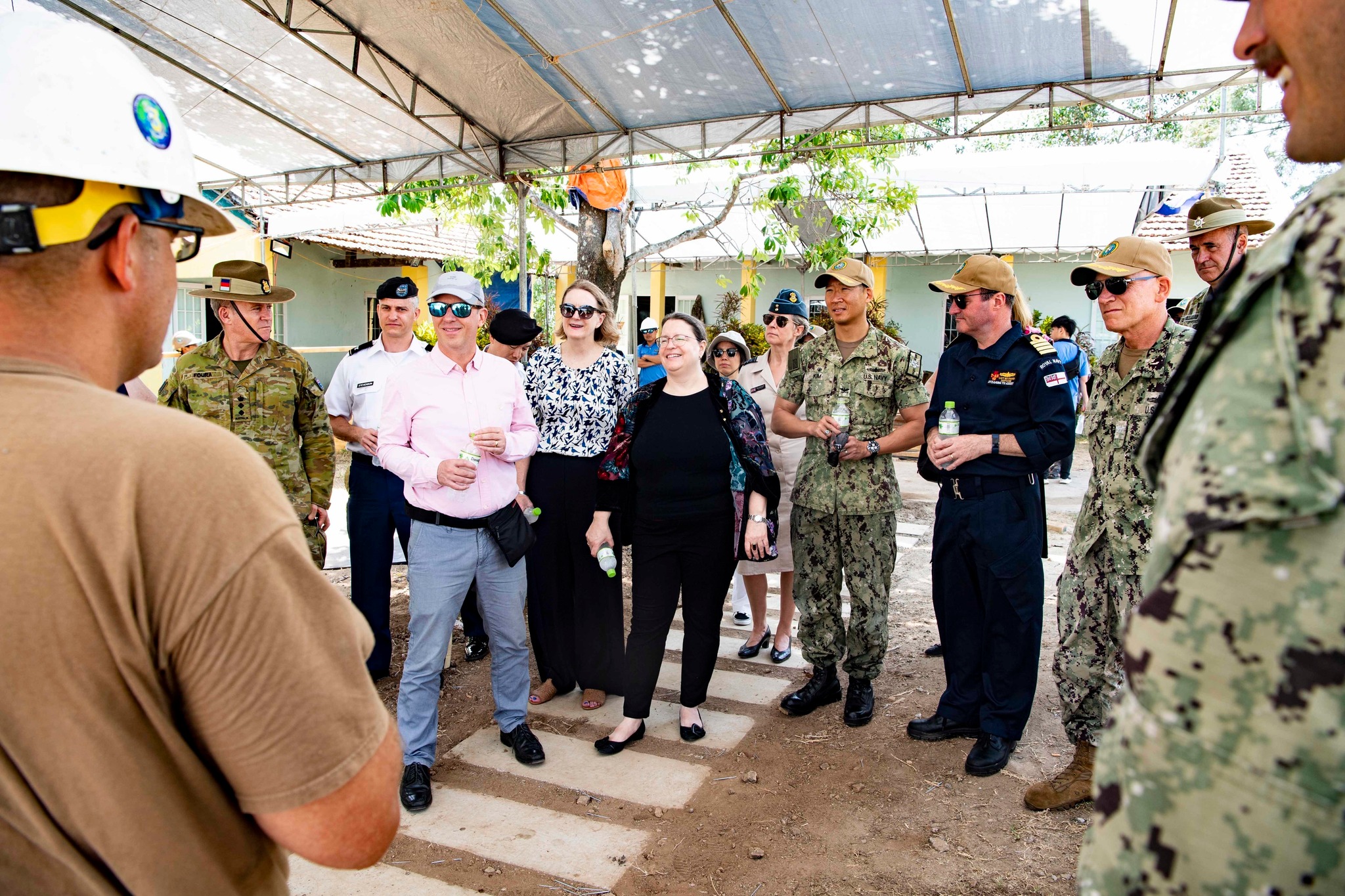 U.S. Consul General to Ho Chi Minh City Marie C. Damour, Australian Consul General to Ho Chi Minh City Sarah Hooper, and UK Ambassador to Vietnam Gareth Ward tour a Pacific Partnership 2022 school construction site with PP22 mission leadership. (U.S. Navy photo by Mass Communication Specialist 1st Class Shamira Purifoy) |