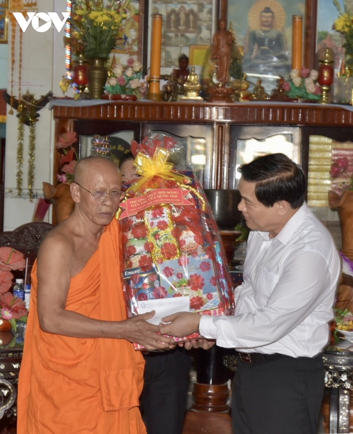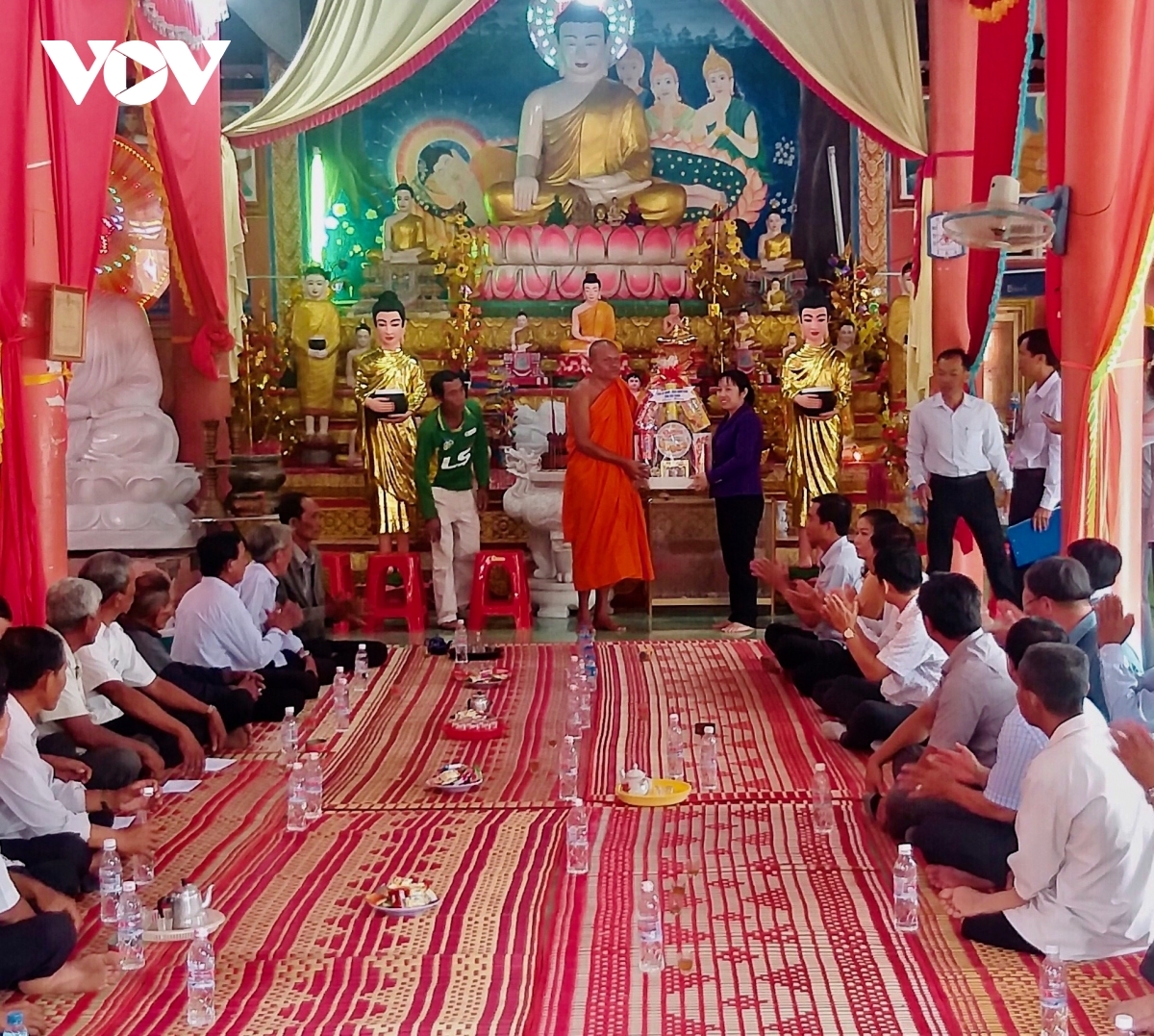 A leader in the Mekong Delta region extends his warmest congratulations to a Khmer Buddhist. |