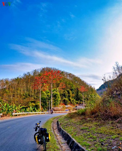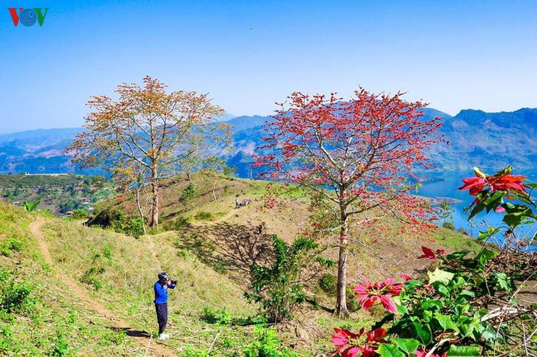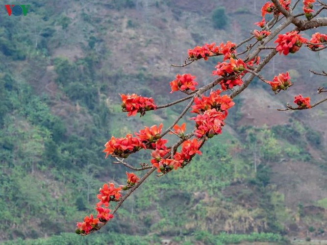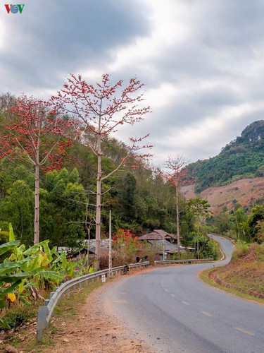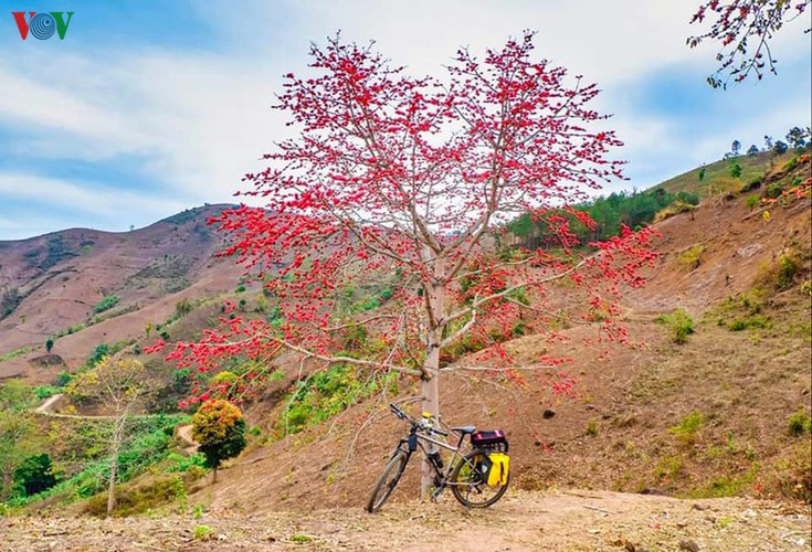 (VOVWORLD) - With bombax ceiba flowers beginning to bloom on the roadsides and mountainous slopes around Quynh Nhai district in the northern province of Son La, a sense of romance can be felt across the region.