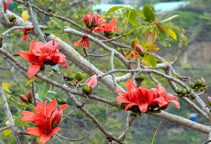 Each year bombax ceiba flowers in Quynh Nhai start their bloom period around mid-February.