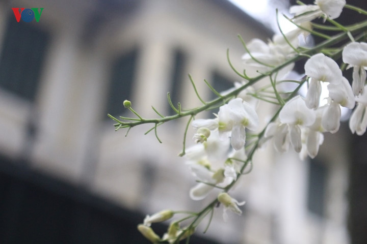 | Sua flowers in Cua Bac street, Ba Dinh district hypnotizes passers-by. |