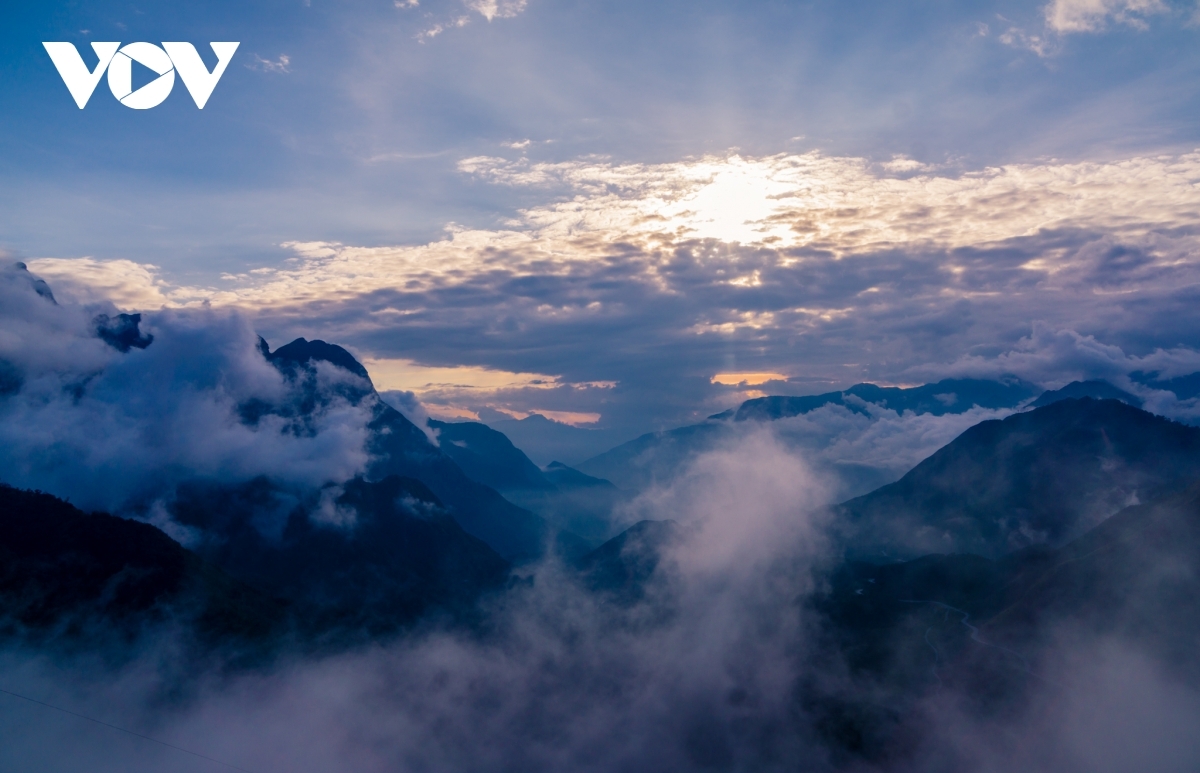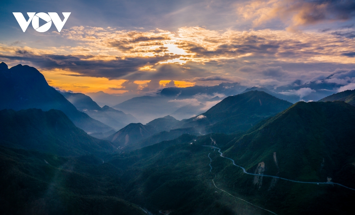 The sun falls behind the valleys of the Ma Pi Leng pass on Dong Van plateau, Ha Giang province. |