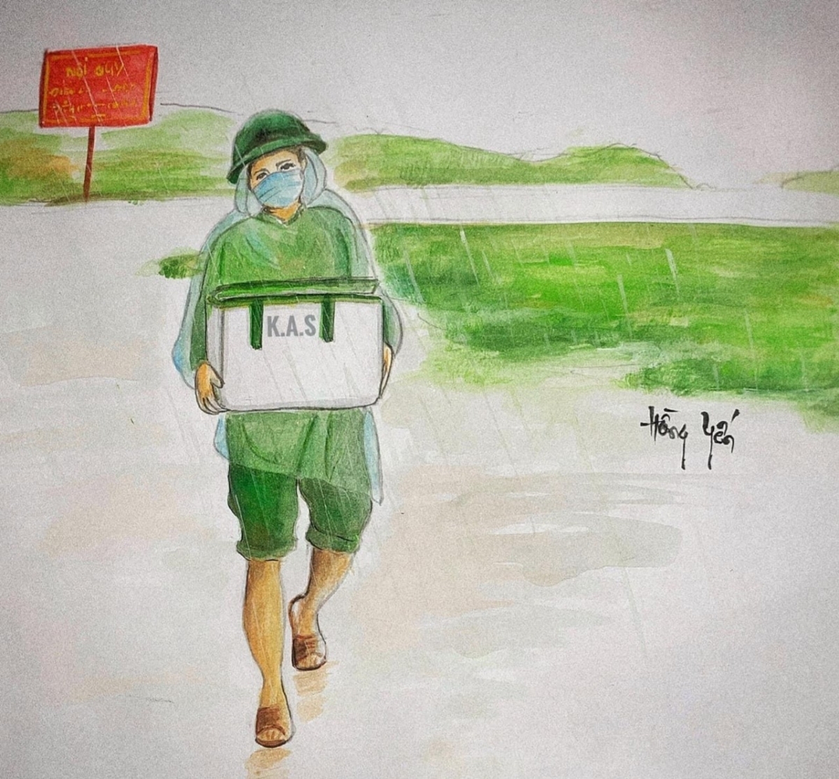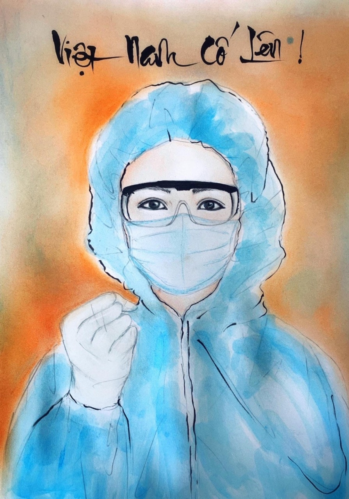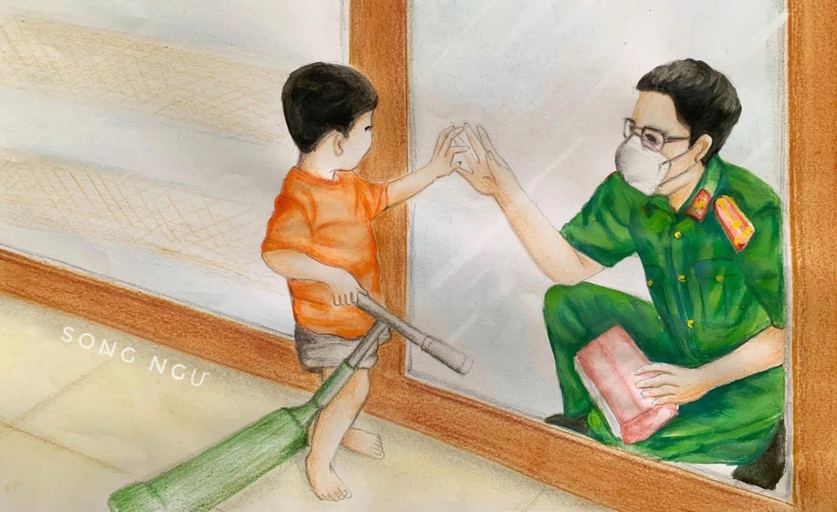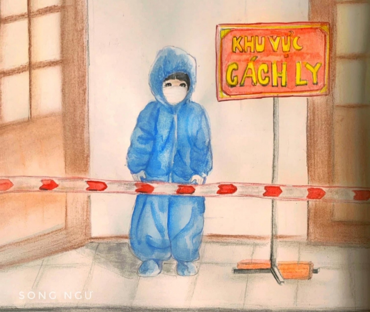 Nguyen Thi Hong Yen, a 37-year-old arts teacher from Nguyen An Ninh secondary school in Vung Tau city, has uploaded her paintings on Facebook to show her gratitude to frontline workers. A painting depicts the great determination of a healthcare worker in the ongoing fight. |