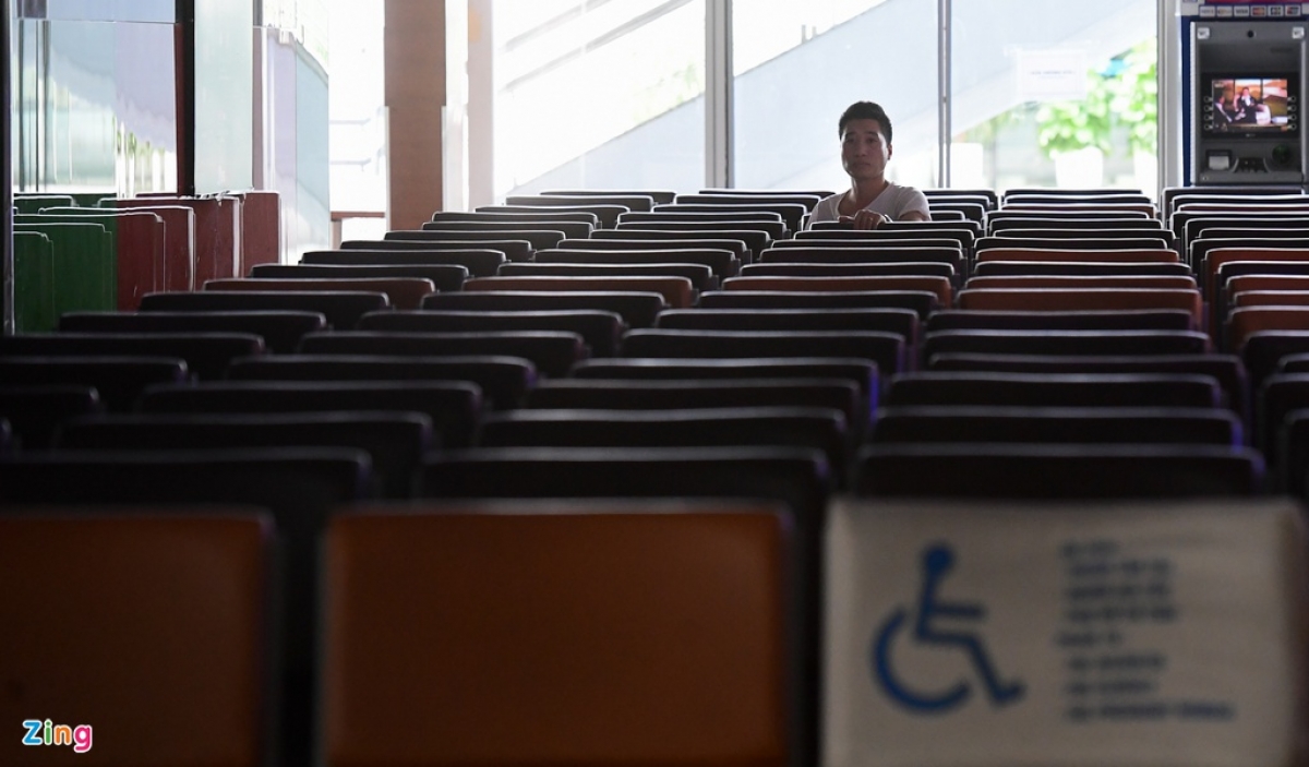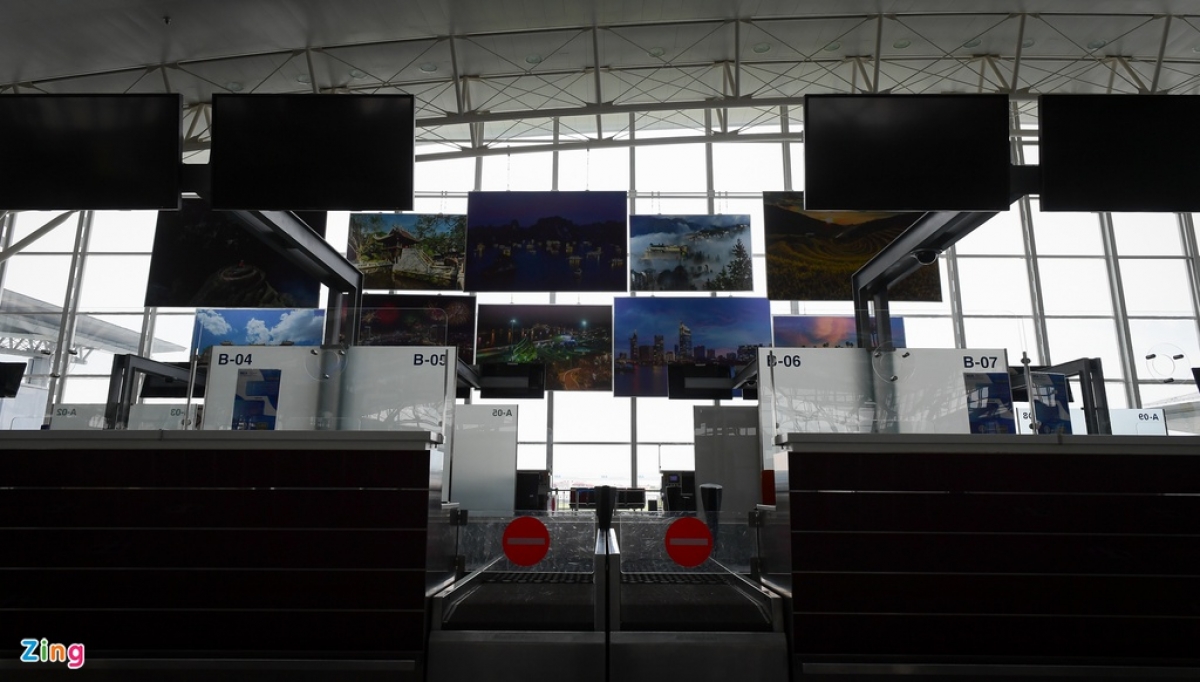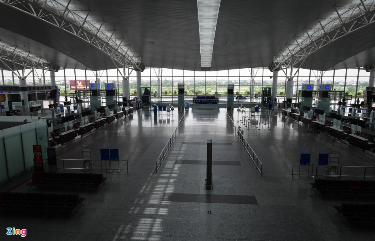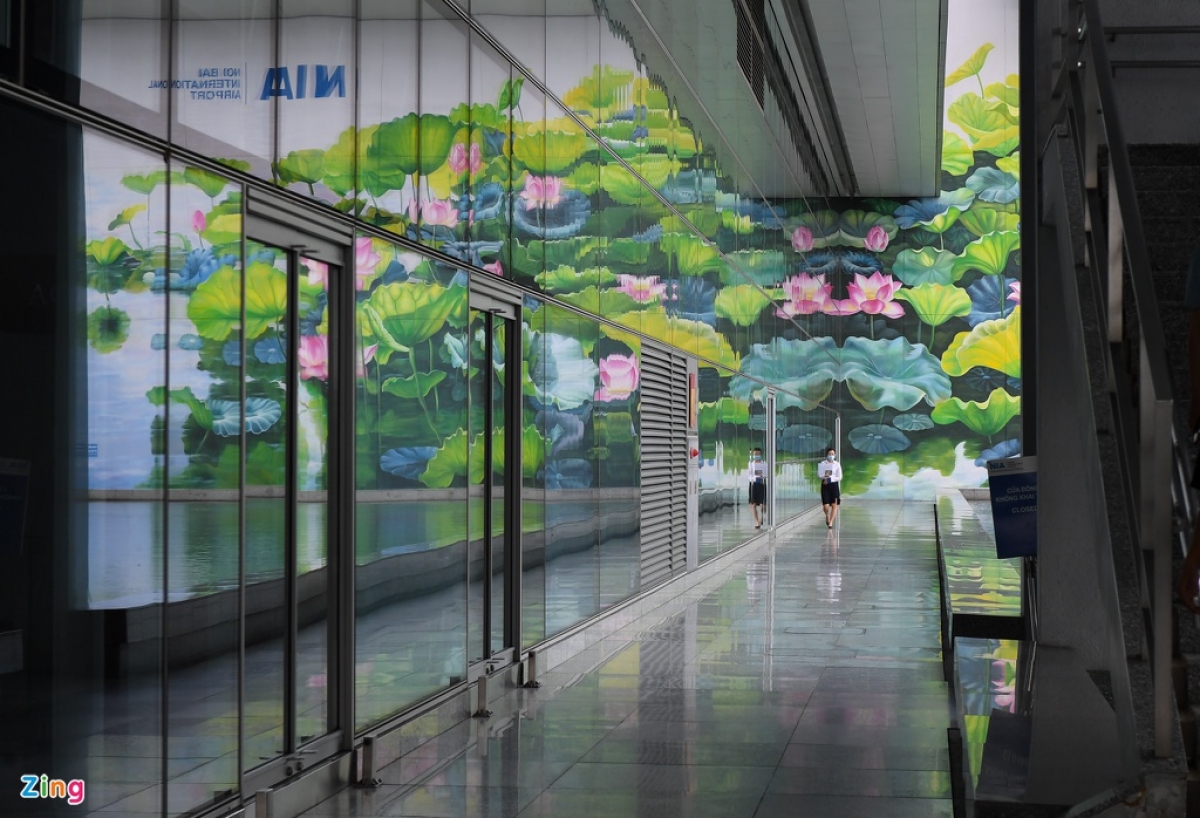 In contrast to the busy atmosphere of the domestic terminal, Terminal 2 at Noi Bai International Airport is left deserted due to the lack of flights, with most of them arriving or departing at night.