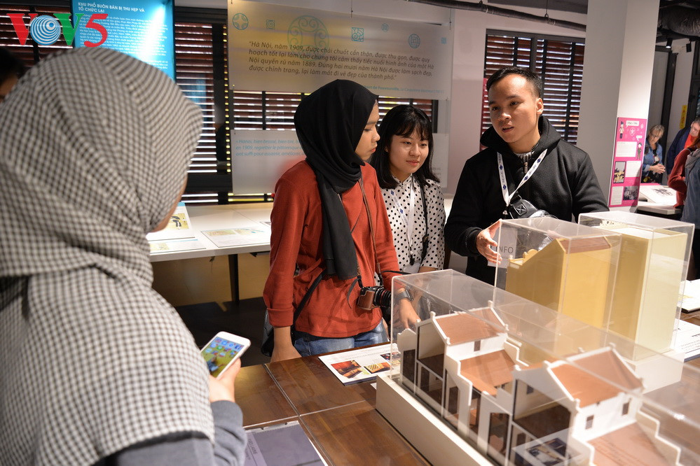 They visit Phung Hung mural street, the Hang Luoc flower market, and a number of historical relics in downtown Hanoi. |