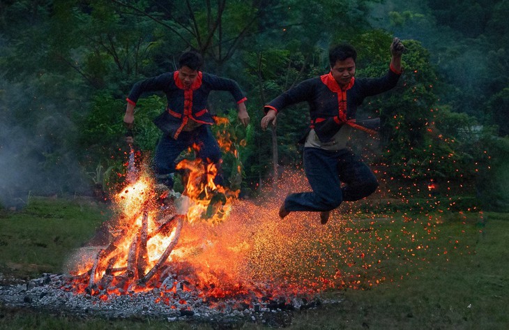 Ethnic people in Lu Giang, Mau Son, Lang Son by the fire. |