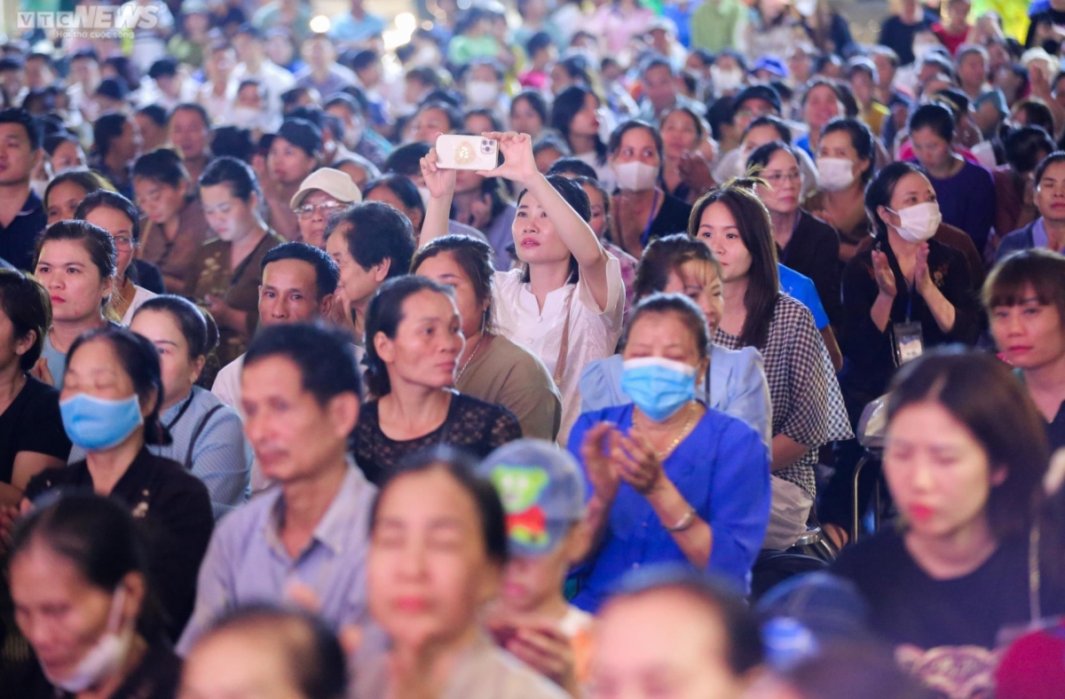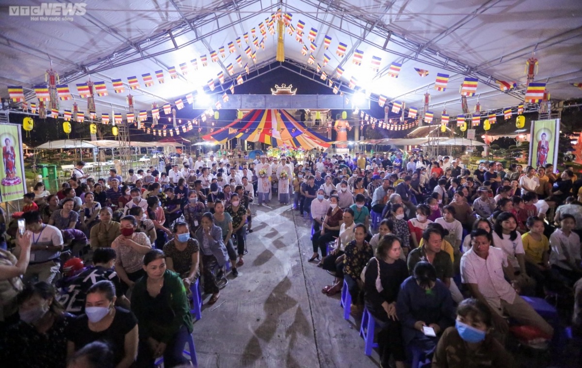 Thousands of Buddhist followers attend a Vu Lan prayer ceremony that takes place in the pagoda.