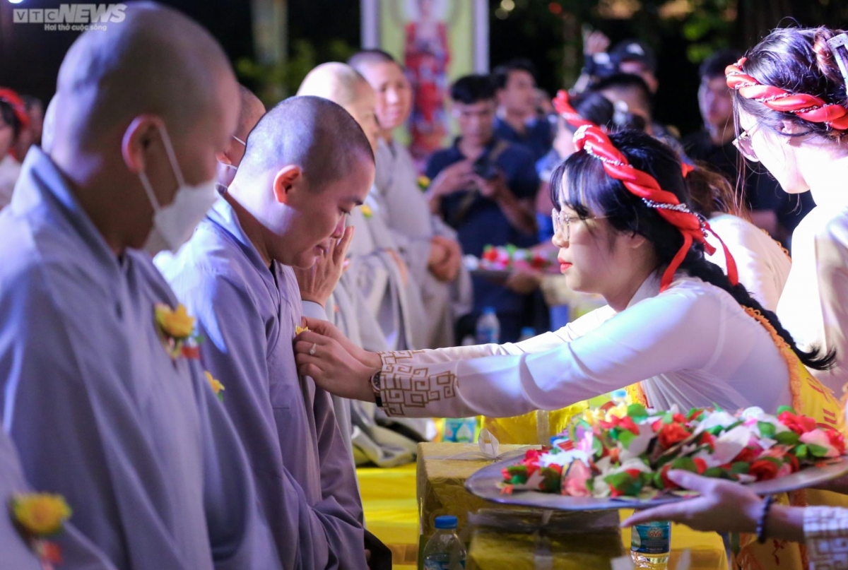 Wearing red and white roses is viewed as a traditional part of the celebration of the Vu Lan Festival.