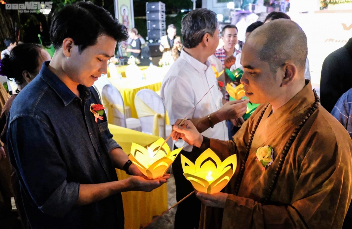 Lotus lanterns are lit up during the course of the ceremony.