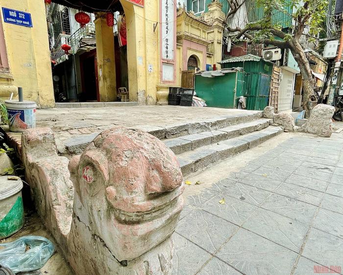 Cai gate was built with a wide landing and two sculptures of ‘nghe’ (a fictional creature with a lion-like head, long tail and dog-like body) on both sides. |