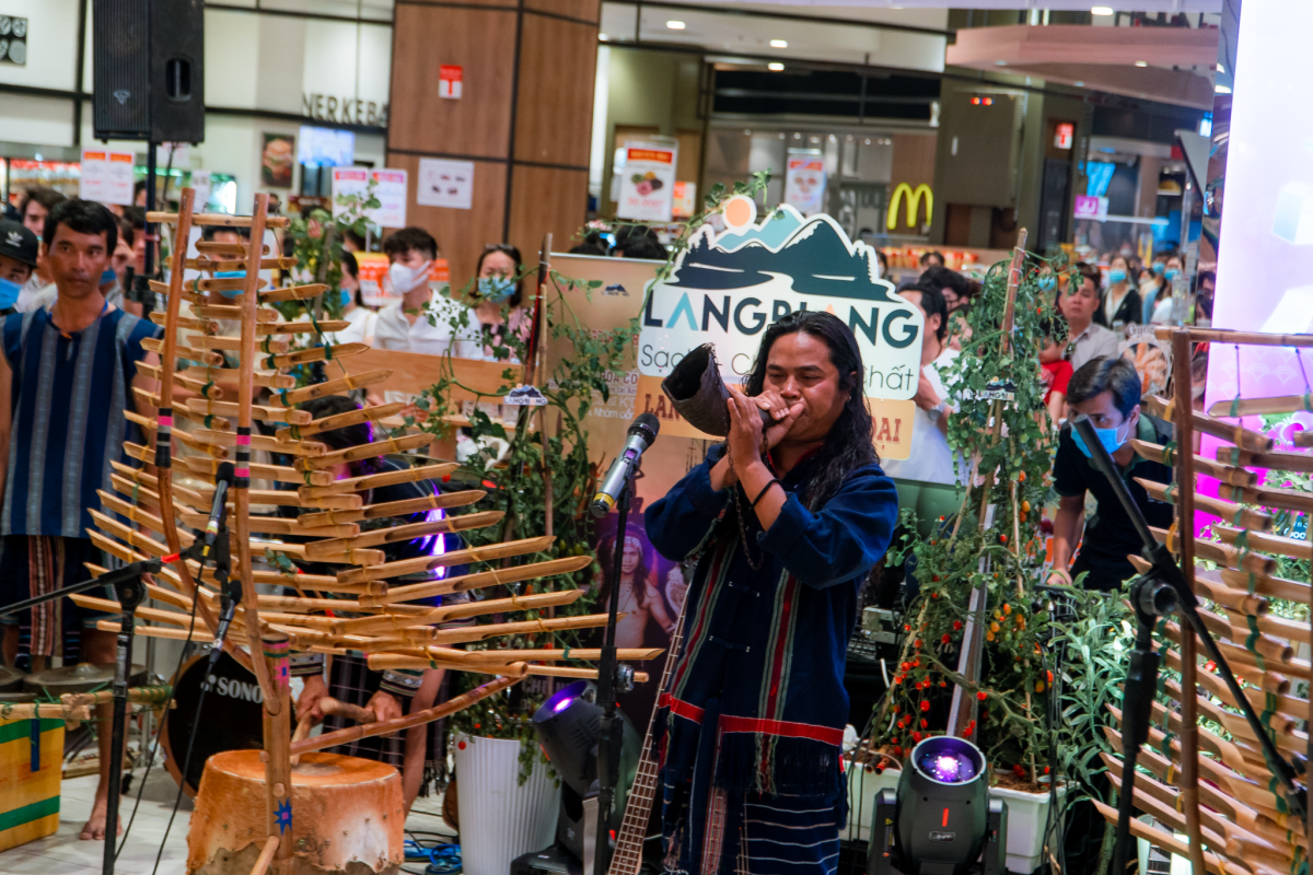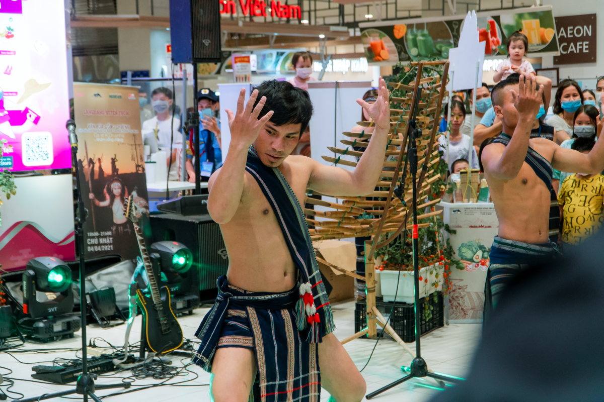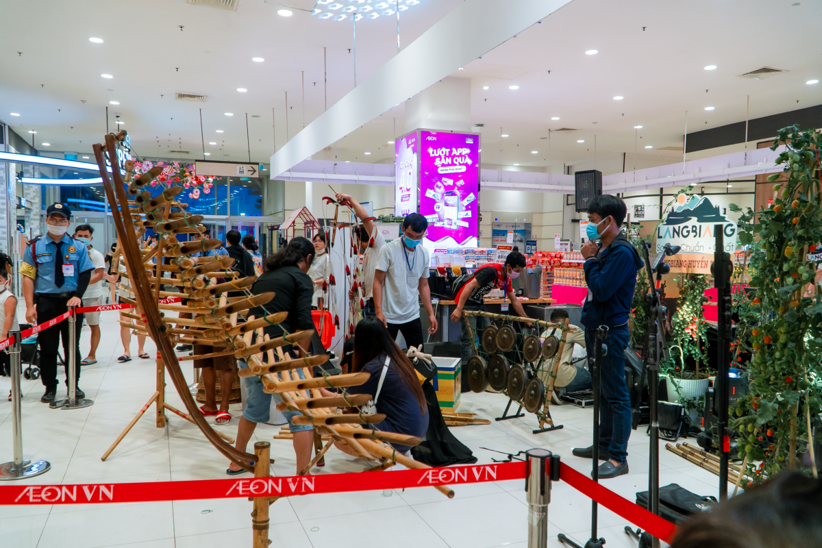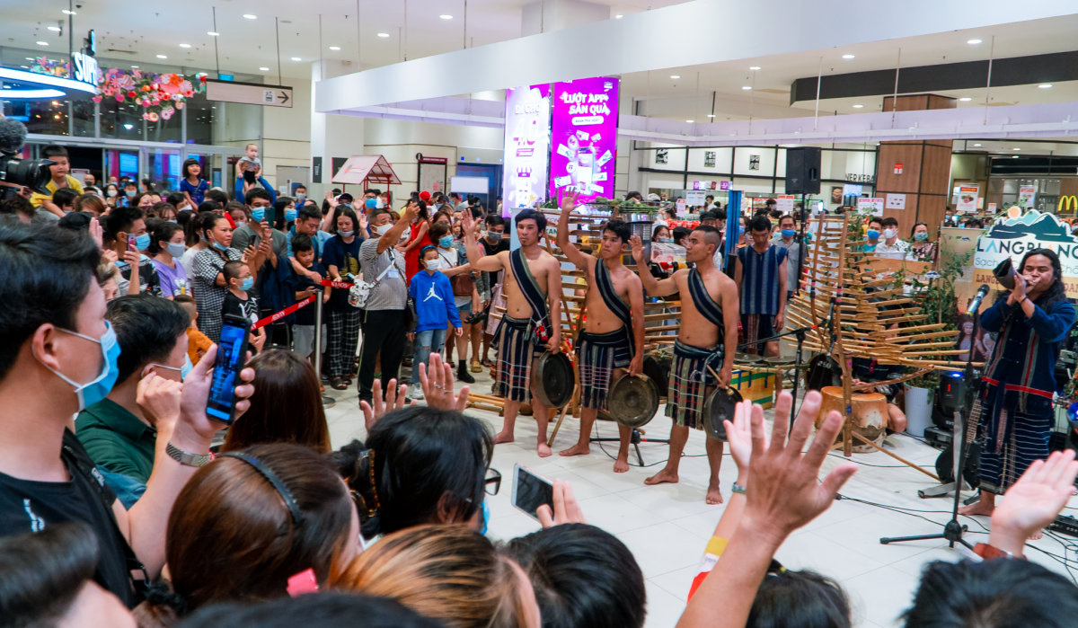 | The gong performance is part of a cultural program themed “Lang Biang legendary night”, which is held at Aeon Mall Tan Phu in Ho Chi Minh City. |