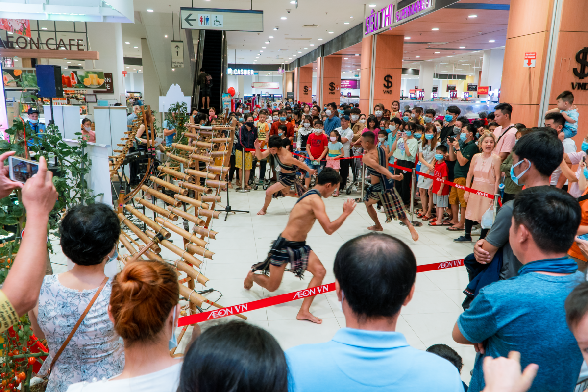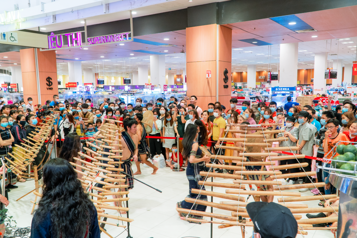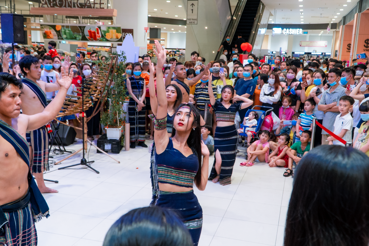 | The gong performance is part of a cultural program themed “Lang Biang legendary night”, which is held at Aeon Mall Tan Phu in Ho Chi Minh City. |