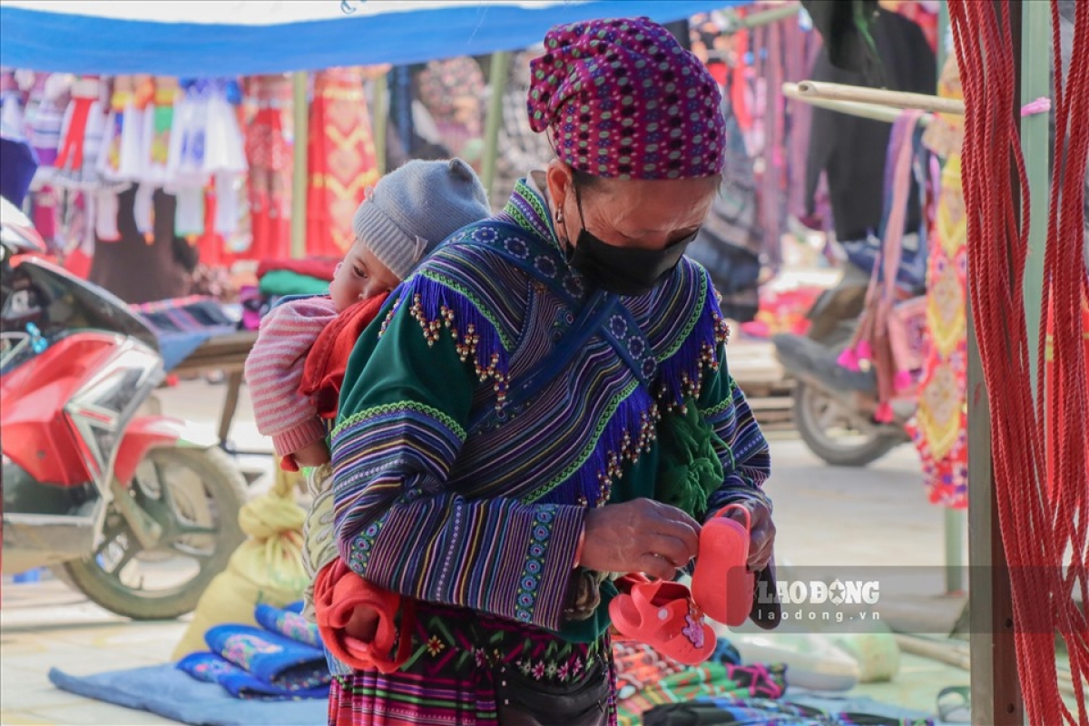 Women and tourists are attracted to the clothing corner where they can choose from a variety of brocade clothes, accessories, and bamboo papooses.