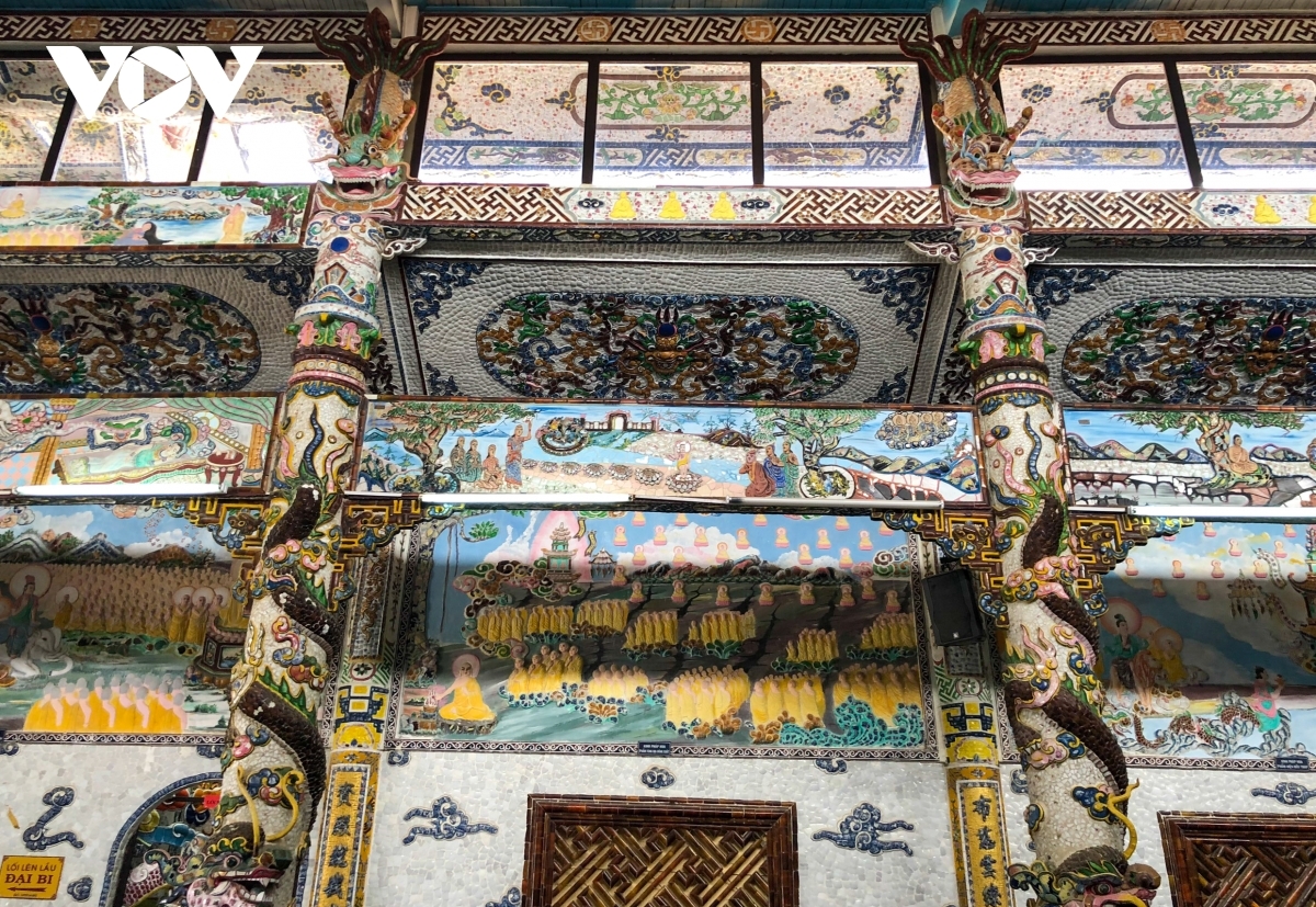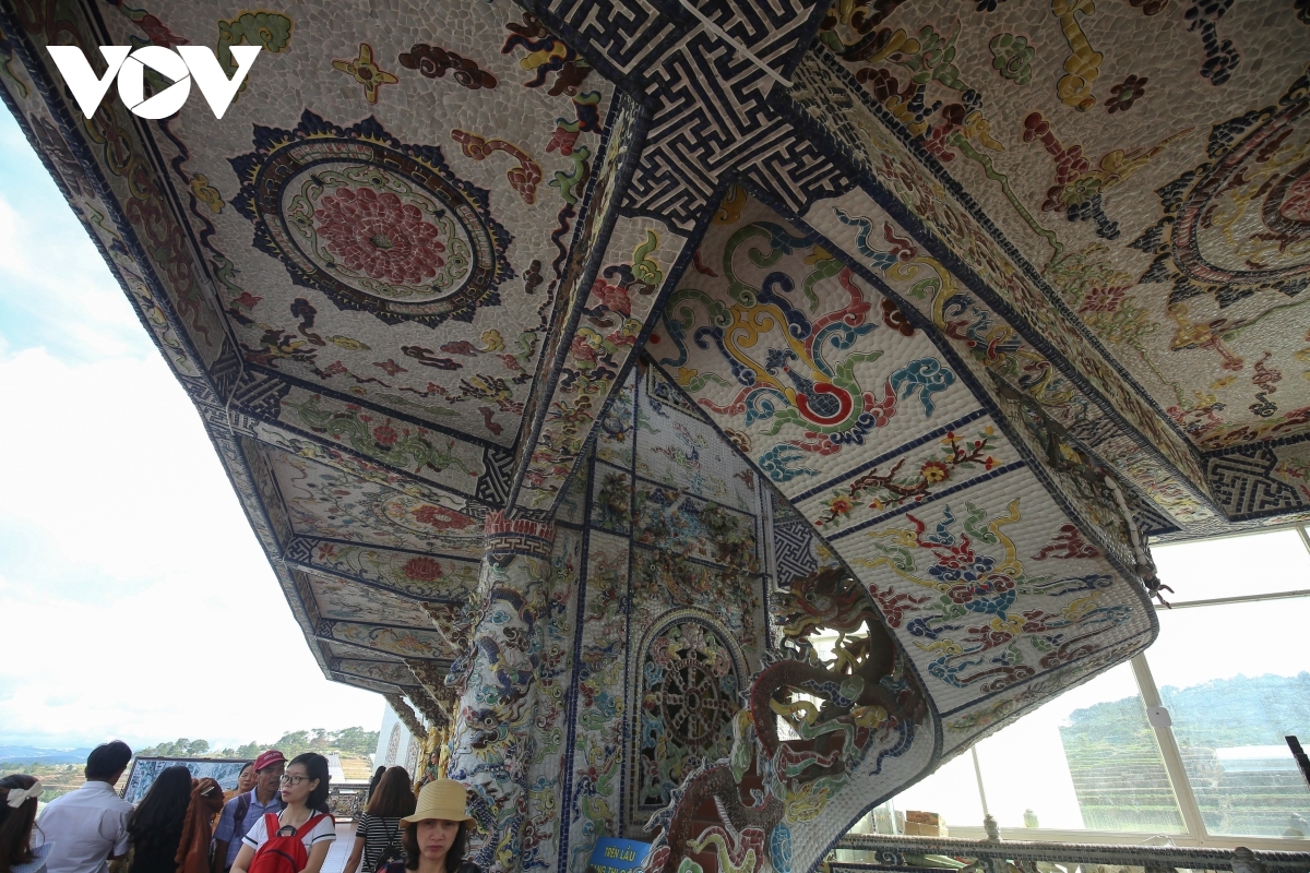 | Linh Phuoc pagoda is also known as "Ve Chai" pagoda as it was built from fragments of plastic bottles, chinaware, and colorful crockery items. |
