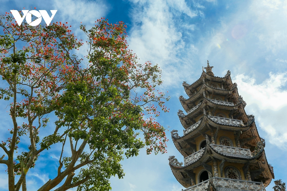 | A 36m-high tower featuring seven storeys is situated in front of the garden. The building is the highest pagoda tower in Da Lat and is a place of worship for Buddhists, whilst also serving as a museum. |