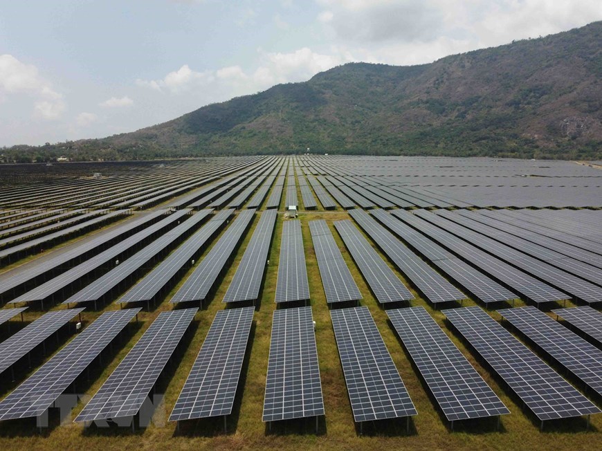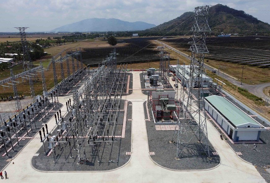 Trung Nam Group’s transformer station and 220/500kV transmission line connected with the Trung Nam Thuan Nam solar power plant, the largest of its kind in Southeast Asia. (Photo: VNA) |
