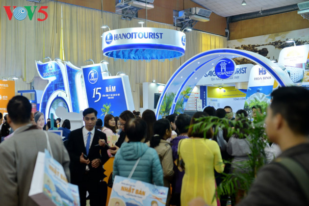 | A big crowd of people queue in front of the Hanoitourist booth. VITM 2019, the biggest of its kind since the inaugural event, attracts 720 businesses and tourism promotion agencies from 27 countries and territories worldwide and 47 Vietnamese localities. |