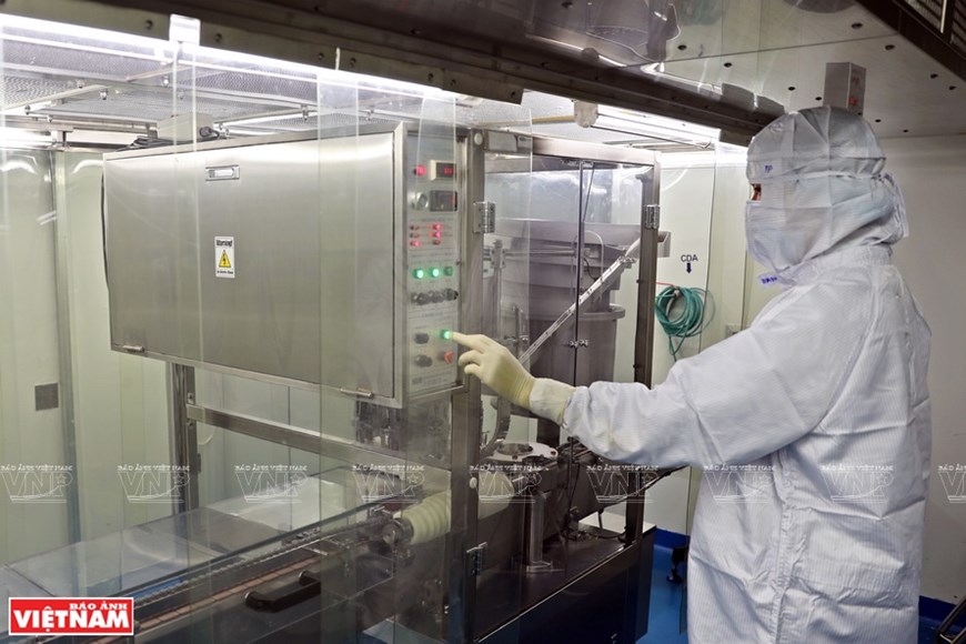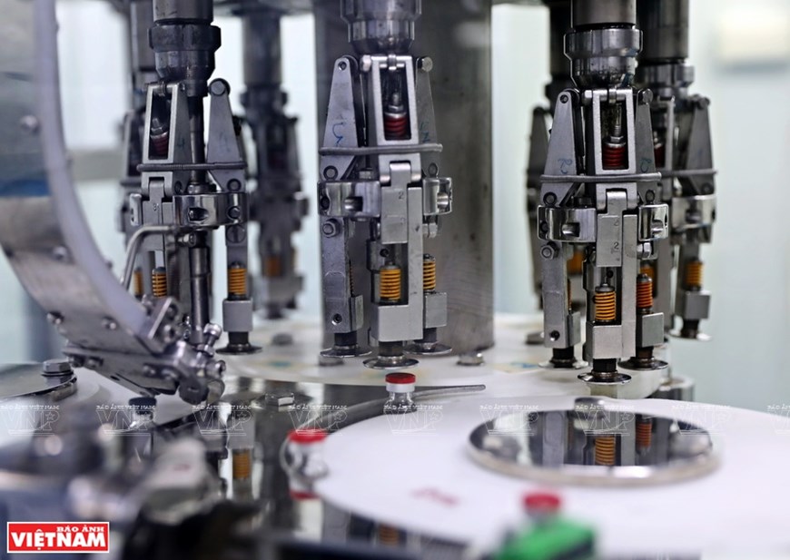 The process of injecting Sputnik V vaccine into the vials is fully automated. (Photo: VNP/VNA) |