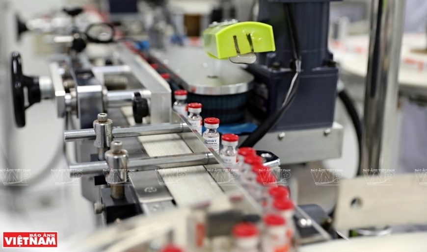 Sputnik V vaccine packaging is conducted at the Company for Vaccine and Biological Production No.1 (VABIOTECH) in Hanoi. (Photo: VNP/VNA) |