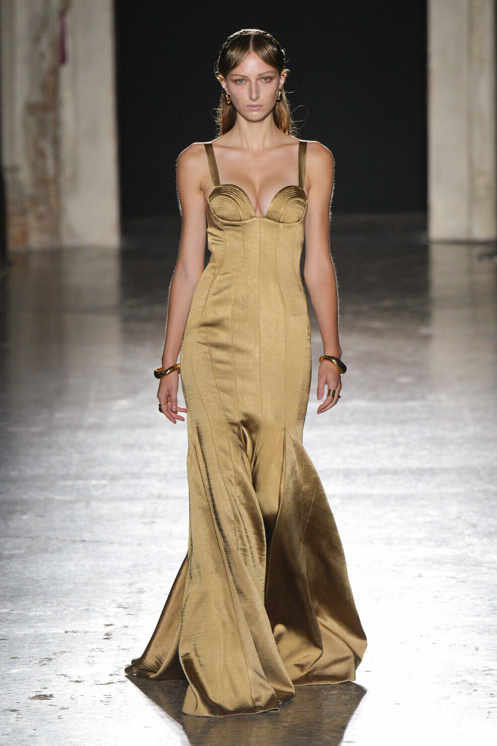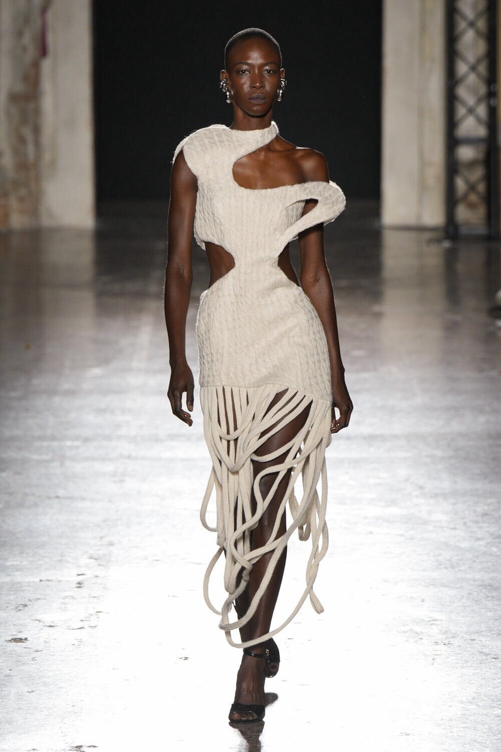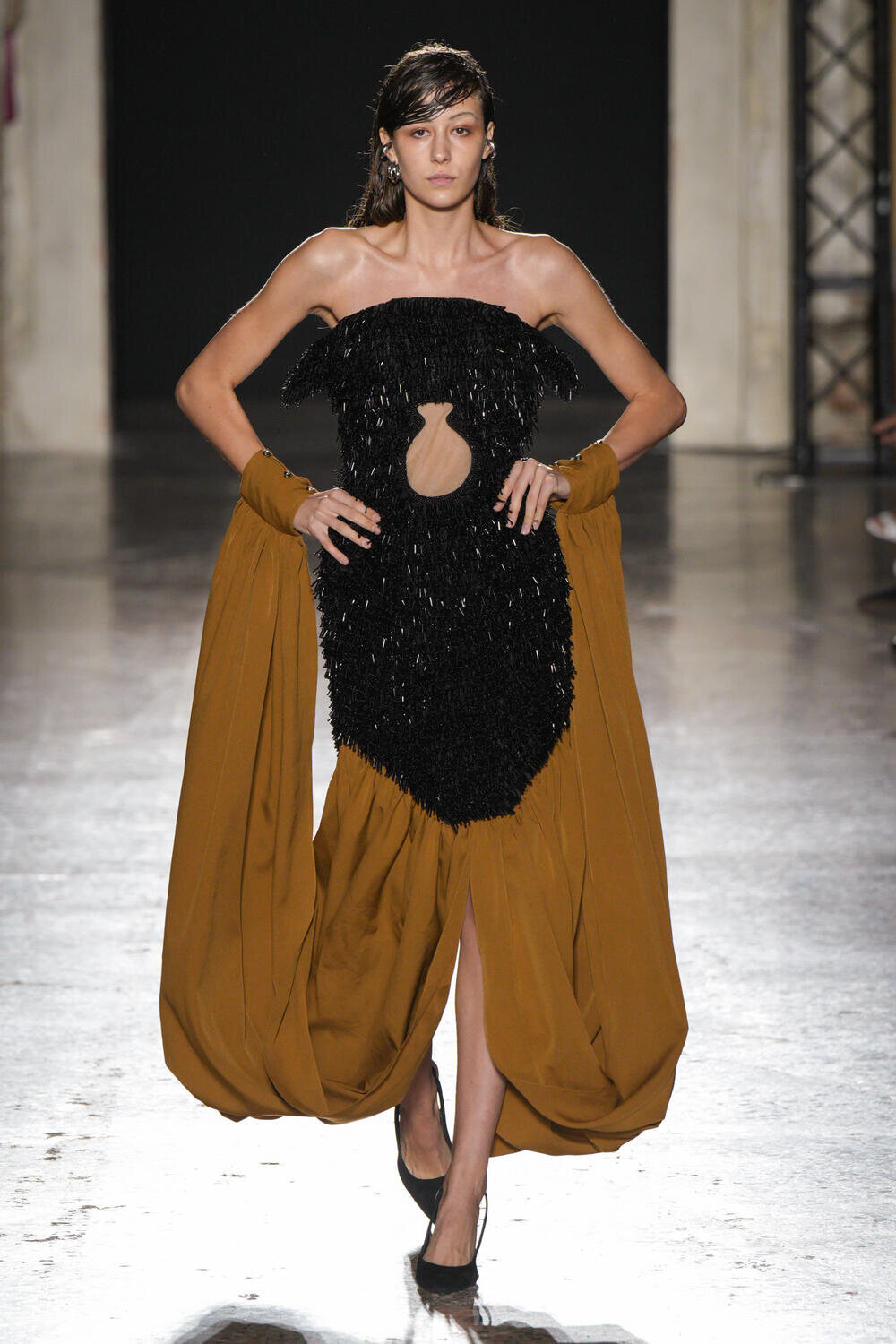 The fashion show takes place at the Royal Palace of Milan in Italy, featuring the collection "Ceramics" made up of 40 designs.