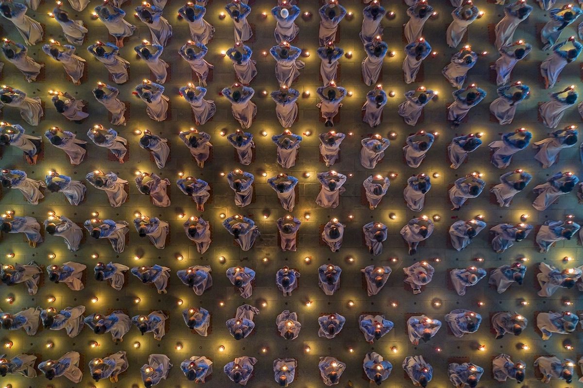 Additional seven images of Vietnamese photographers are among the finalists of the people category of the Drone Photo Awards. A photo titled “Buddhists are praying” by Khanh Phan is also highly commended at the contest. |