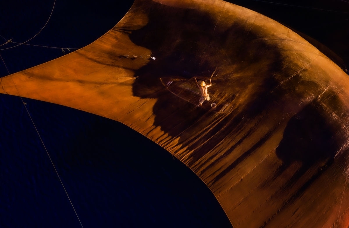 Photographer Nguyen Phuoc Hoai’s image captures the moment a fisherman in Binh Dinh province catches fish during the seaweed season. |