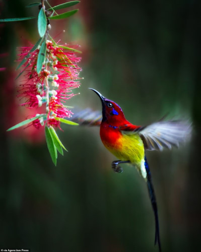 Vinh captures an image of a Gould's sun bird approaching a flower in Kon Tum, winning the competition’s first prize in the process. As a result, he is awarded US$1,000 as prize money.